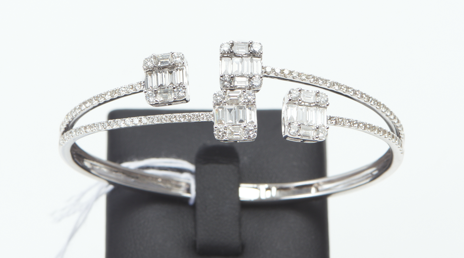 A DIAMOND LINE BRACELET IN 18CT WHITE GOLD, COMPRISING SIXTY FOUR ROUND BRILLIANT CUT DIAMONDS TOTALLING 5.34CTS, TOTAL LENGTH 180MM