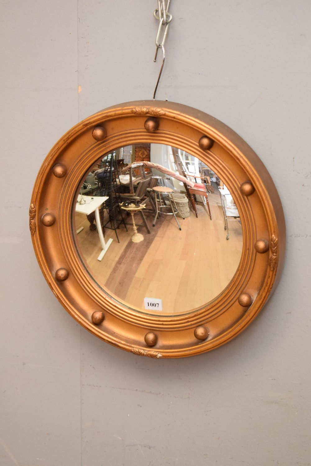 A DECORATIVE GILT FRAMED CONVEX MIRROR (35D CM) (LEONARD JOEL DELIVERY SIZE: SMALL)