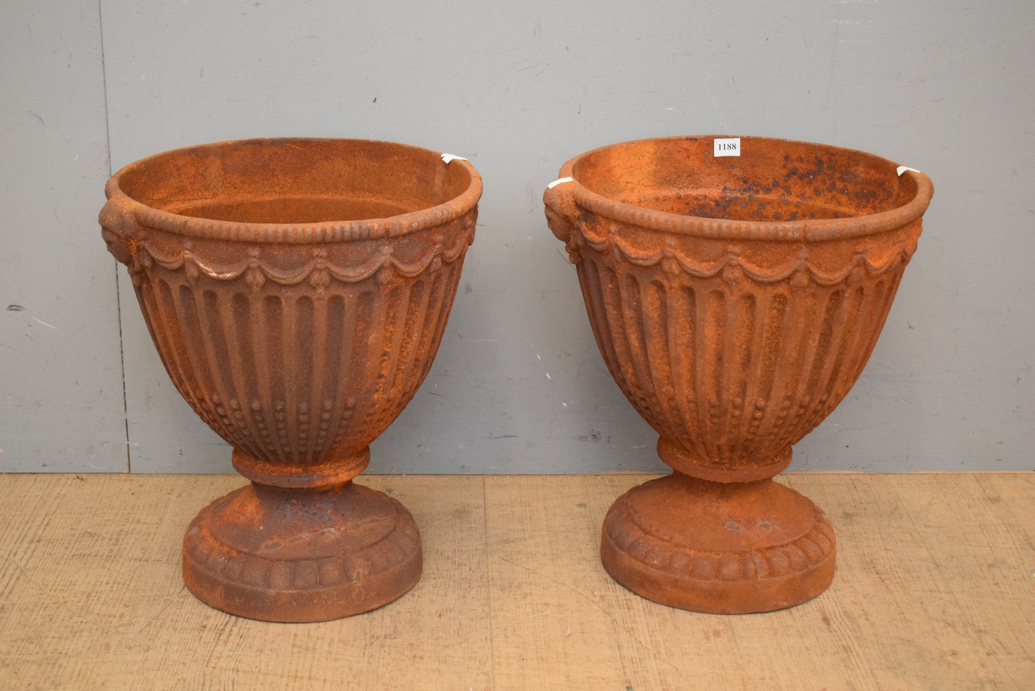 A PAIR OF CLASSICAL STYLE CAST IRON URNS (38H x 33D CM) (LEONARD JOEL DELIVERY SIZE: LARGE)