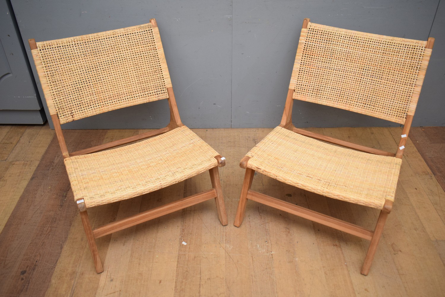 TWO TEAK AND RATTAN CHAIRS (A/F) (77H x 65W x 90D CM) (LEONARD JOEL DELIVERY SIZE: LARGE)