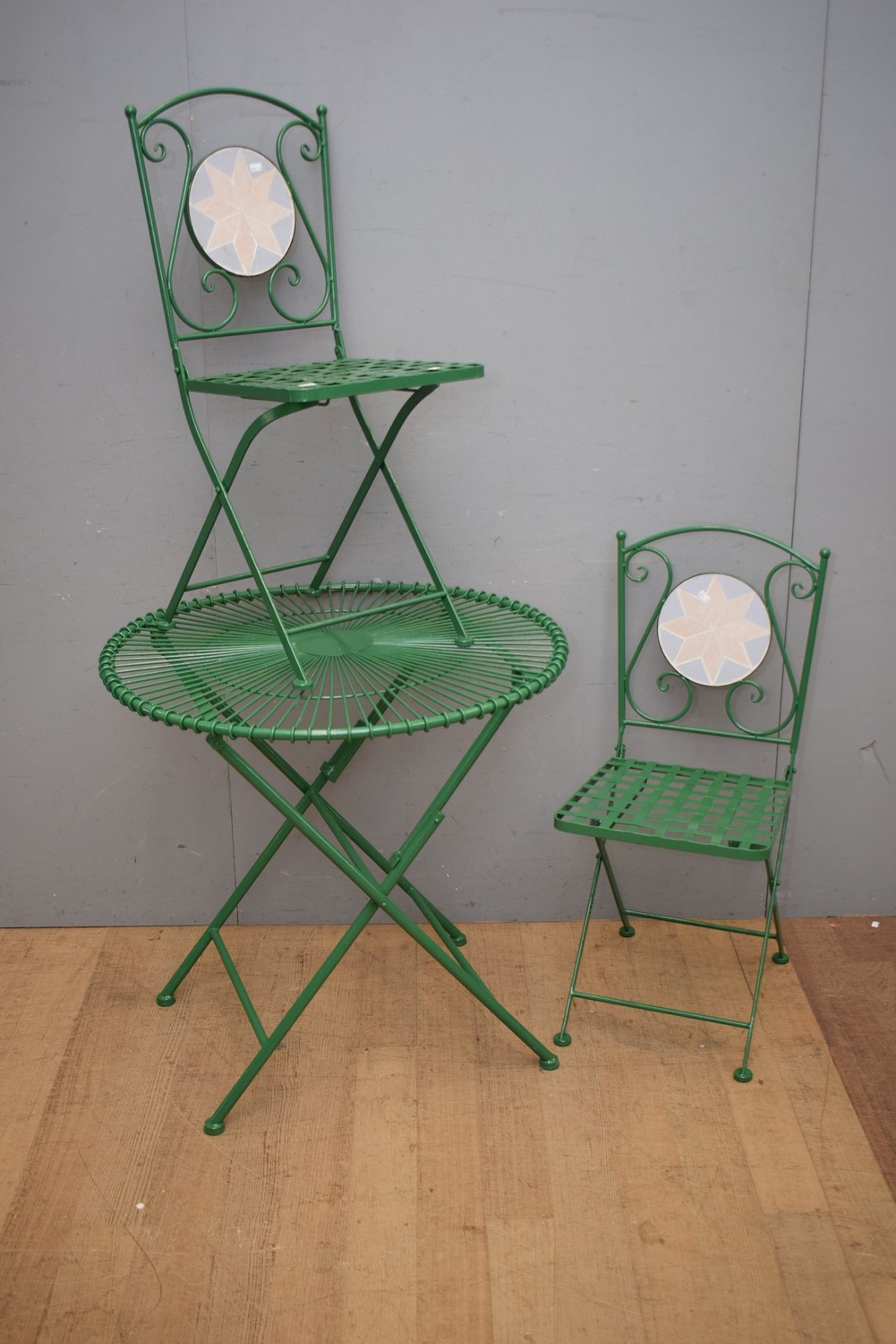 A THREE PIECE OUTDOOR SETTING WITH MOSAIC DETAILING (TABLE 76H x 78D CM) (LEONARD JOEL DELIVERY SIZE: LARGE)