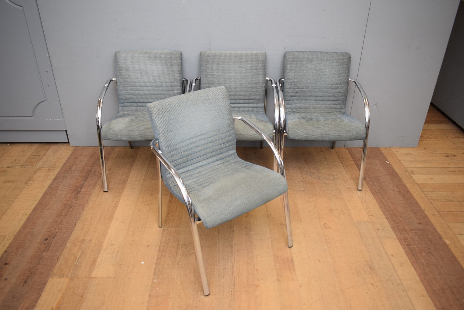 A SET OF FOUR CONTEMPORARY CHROME CHAIRS (80H x 60W x 62D CM) (LEONARD JOEL DELIVERY SIZE: LARGE)