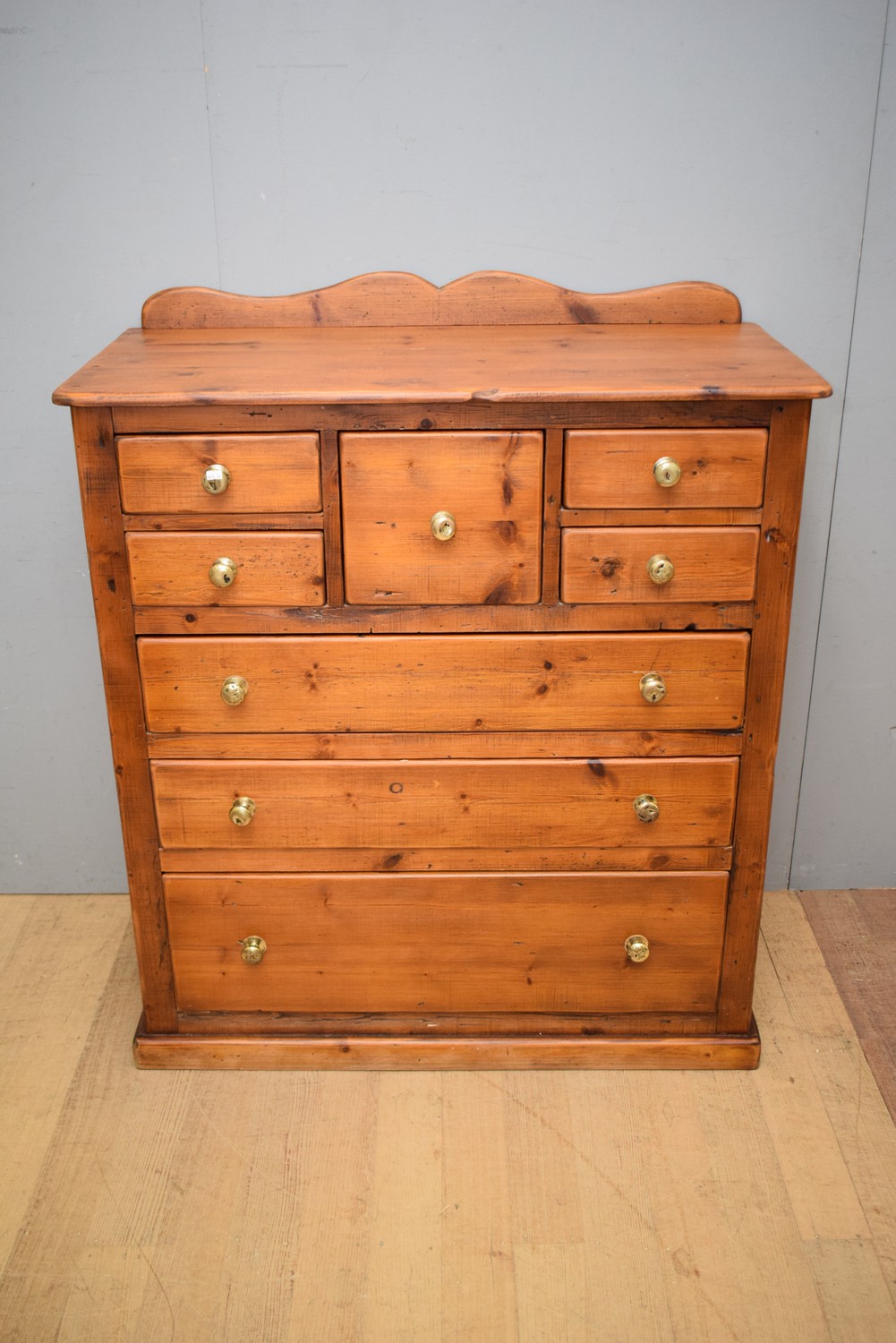 AN EIGHT DRAWER TIMBER CHEST WITH BRASS HANDLES (A/F) (127H x 110W x 55D CM) (PLEASE NOTE THIS HEAVY ITEM MUST BE REMOVED BY CARRIERS AT THE CUSTOMER'S EXPENSE. LEONARD JOEL STAFF CANNOT ASSIST CARRYING THIS ITEM) (X-LARGE ITEM)