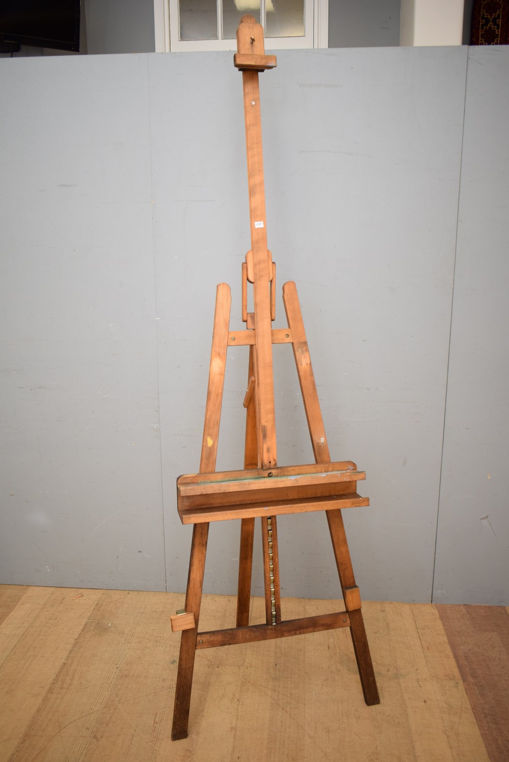 A 'MABEF' TIMBER ARTIST'S EASEL, MADE IN ITALY (A/F) ( 211H X 71W X 60D CM) (LEONARD JOEL DELIVERY SIZE: LARGE)