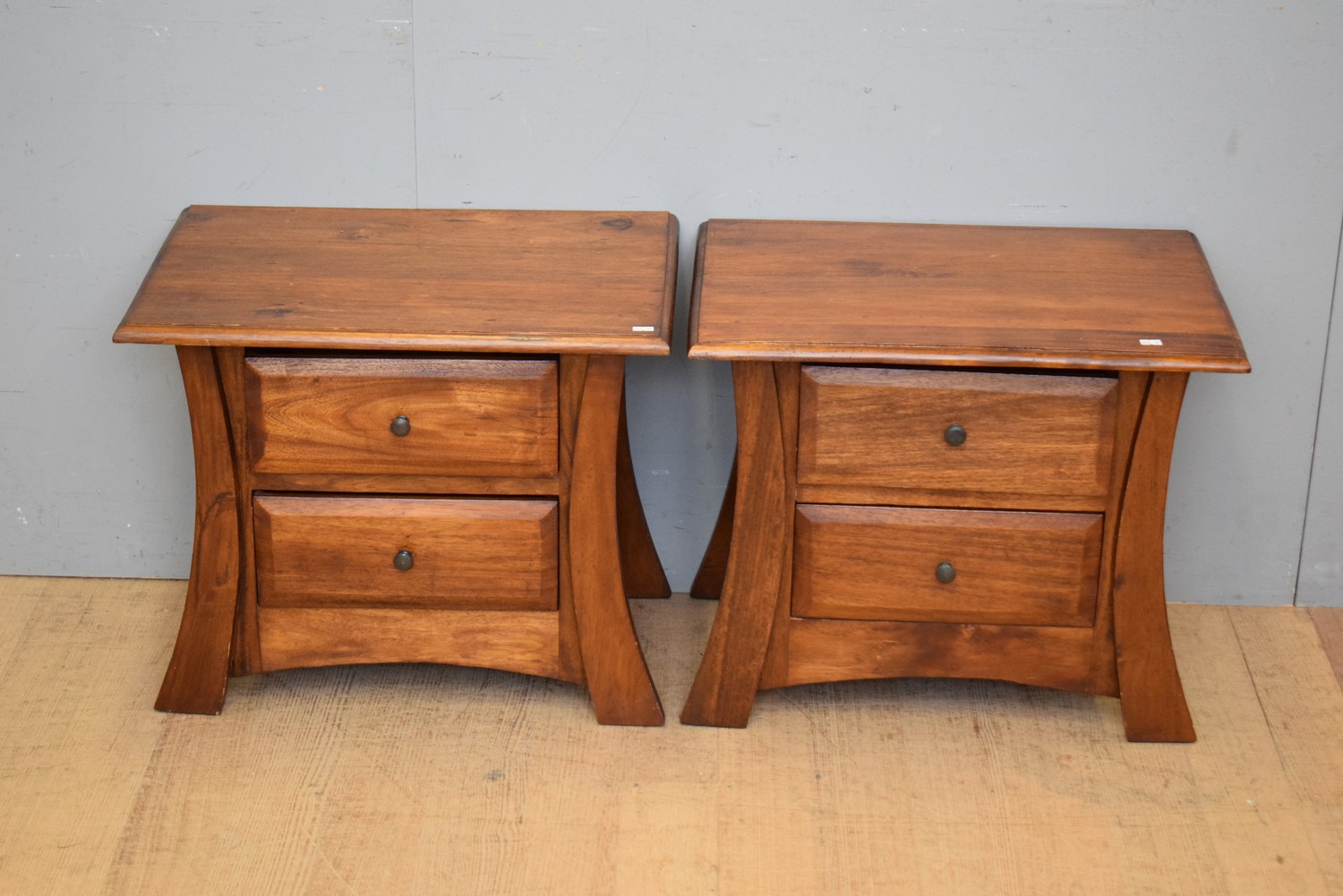 A PAIR OF TIMBER BEDSIDES (51H x 60W x 39D CM) (LEONARD JOEL DELIVERY SIZE: MEDIUM)