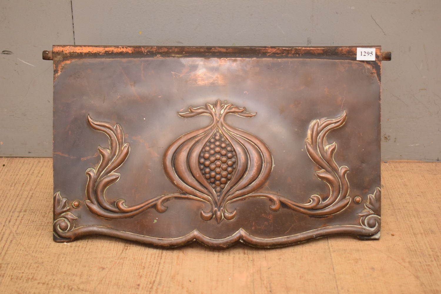 AN ART NOUVEAU CAST IRONE FIRE GUARD WITH PRESSED BRONZE FRONT (A/F) (24H x 48W x 14D CM) (LEONARD JOEL DELIVERY SIZE: SMALL)