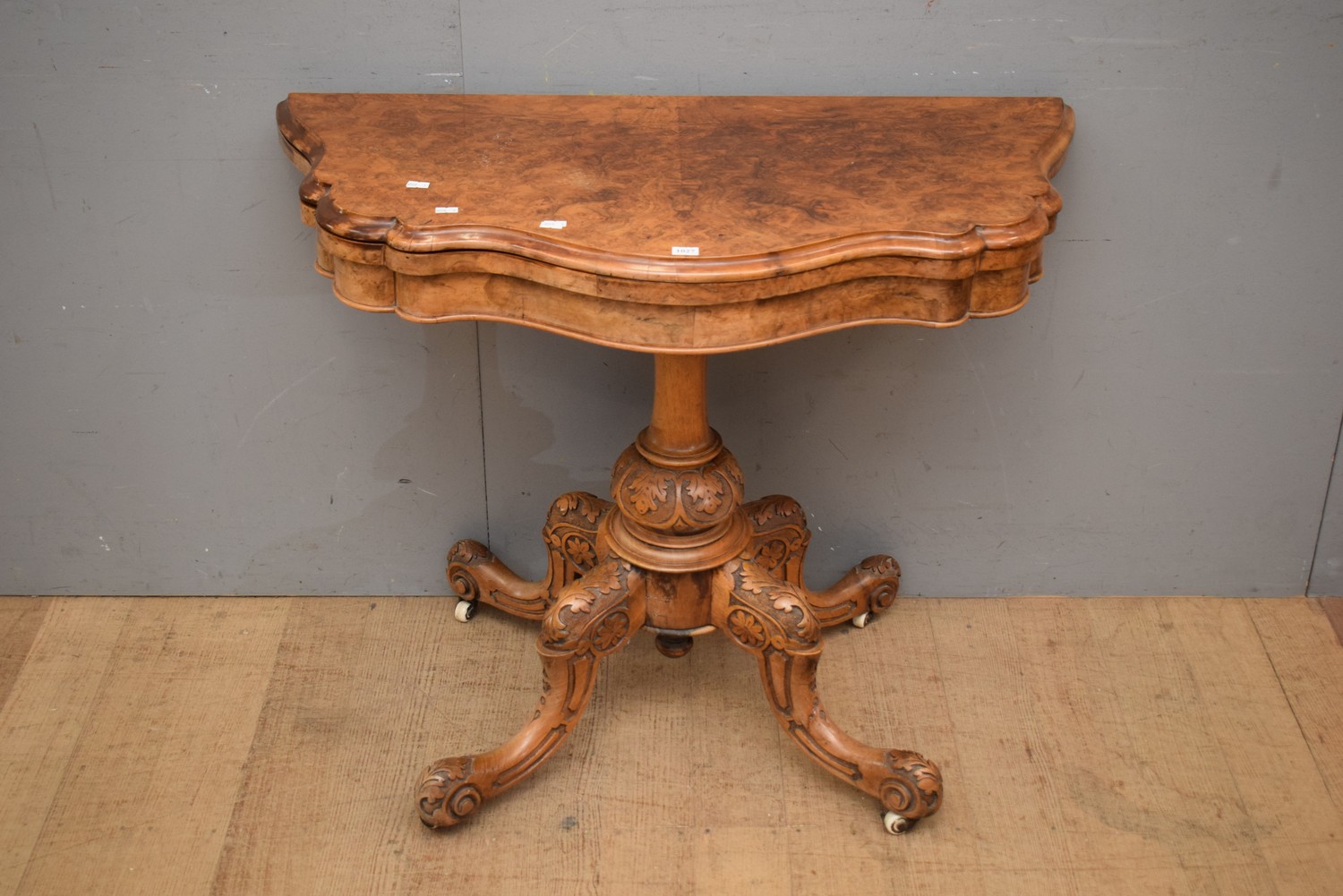 A VICTORIAN GAMES TABLE WITH WALNUT VENEER (A/F) (71H x 92W x 47D CM) (LEONARD JOEL DELIVERY SIZE: MEDIUM)