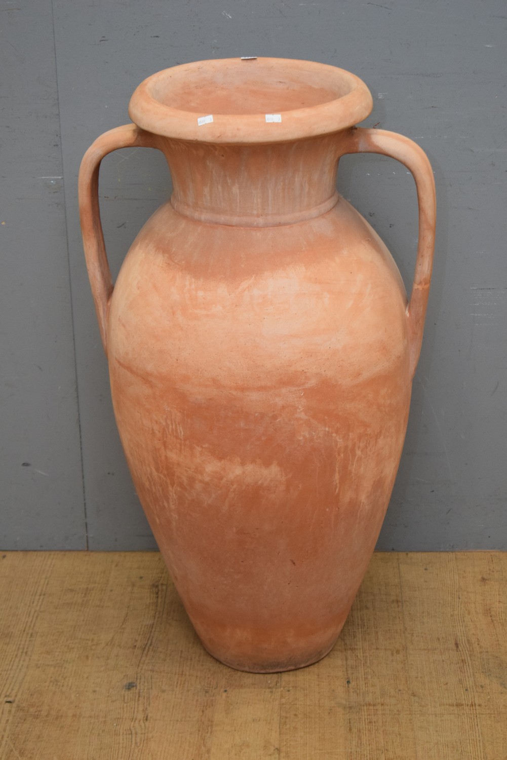 A LARGE ITALIAN TERRACOTTA URN (100H x 52W CM) (PLEASE NOTE THIS HEAVY ITEM MUST BE REMOVED BY CARRIERS AT THE CUSTOMER'S EXPENSE. LEONARD JOEL STAFF CANNOT ASSIST CARRYING THIS ITEM) (X-LARGE ITEM)