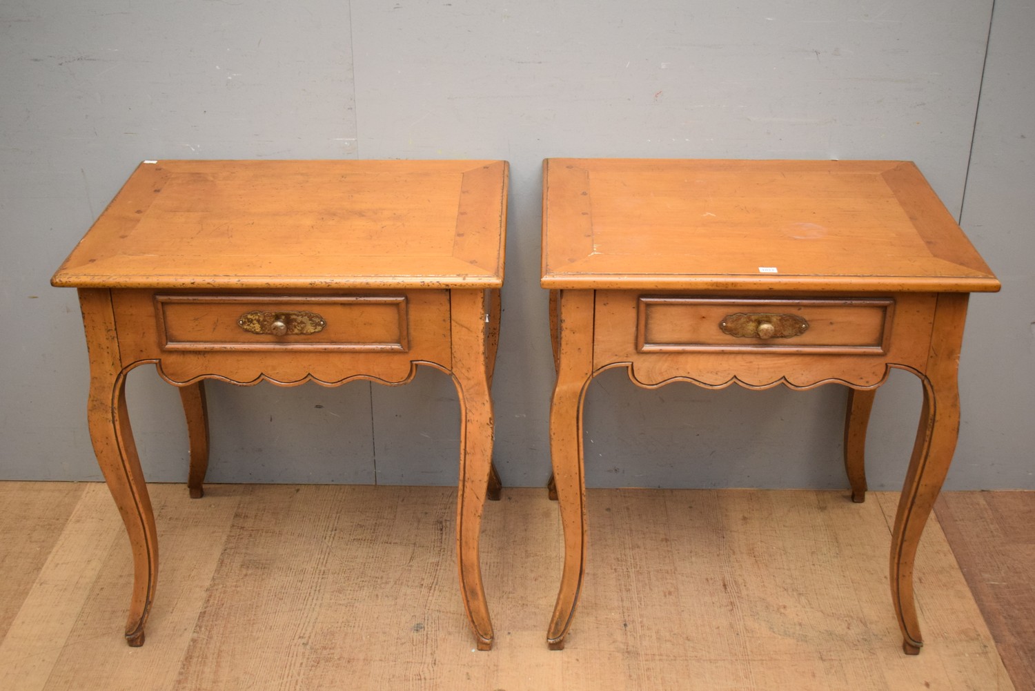 A PAIR OF FRENCH STYLE SINGLE DRAWER BEDSIDES (71H x 67W x 53D CM) (LEONARD JOEL DELIVERY SIZE: LARGE)