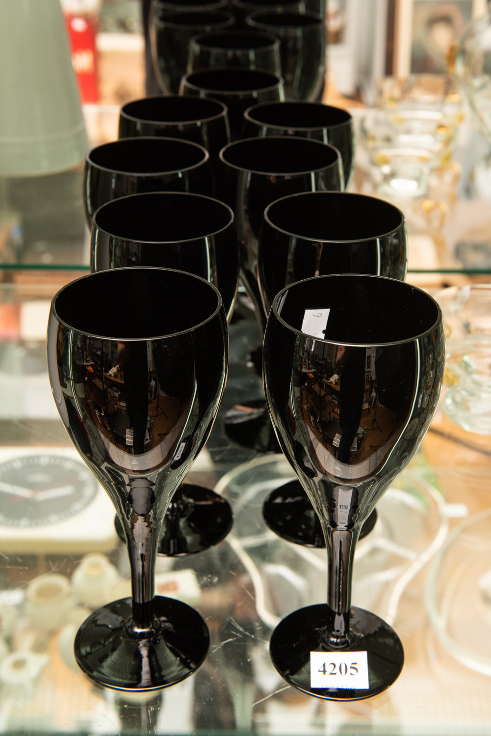 NINE VINTAGE BLACK CRYSTAL SWEDISH WINE GLASSES, LEONARD JOEL LOCAL DELIVERY SIZE: SMALL