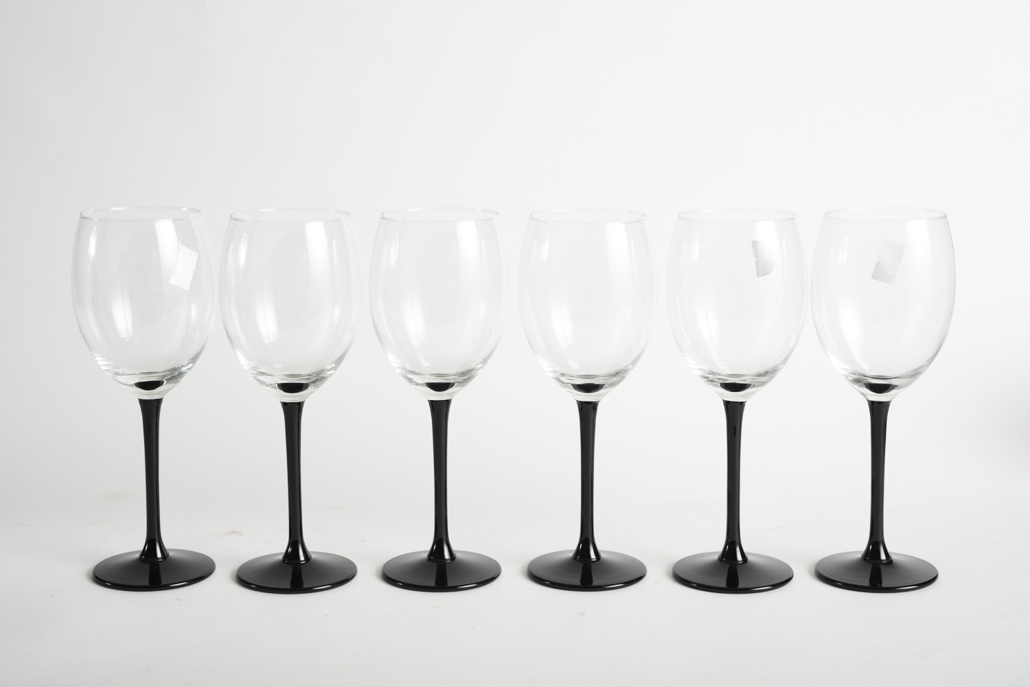SIX VINTAGE LUMINARC FRANCE BLACK STEMMED WINE GLASSES, LEONARD JOEL LOCAL DELIVERY SIZE: SMALL