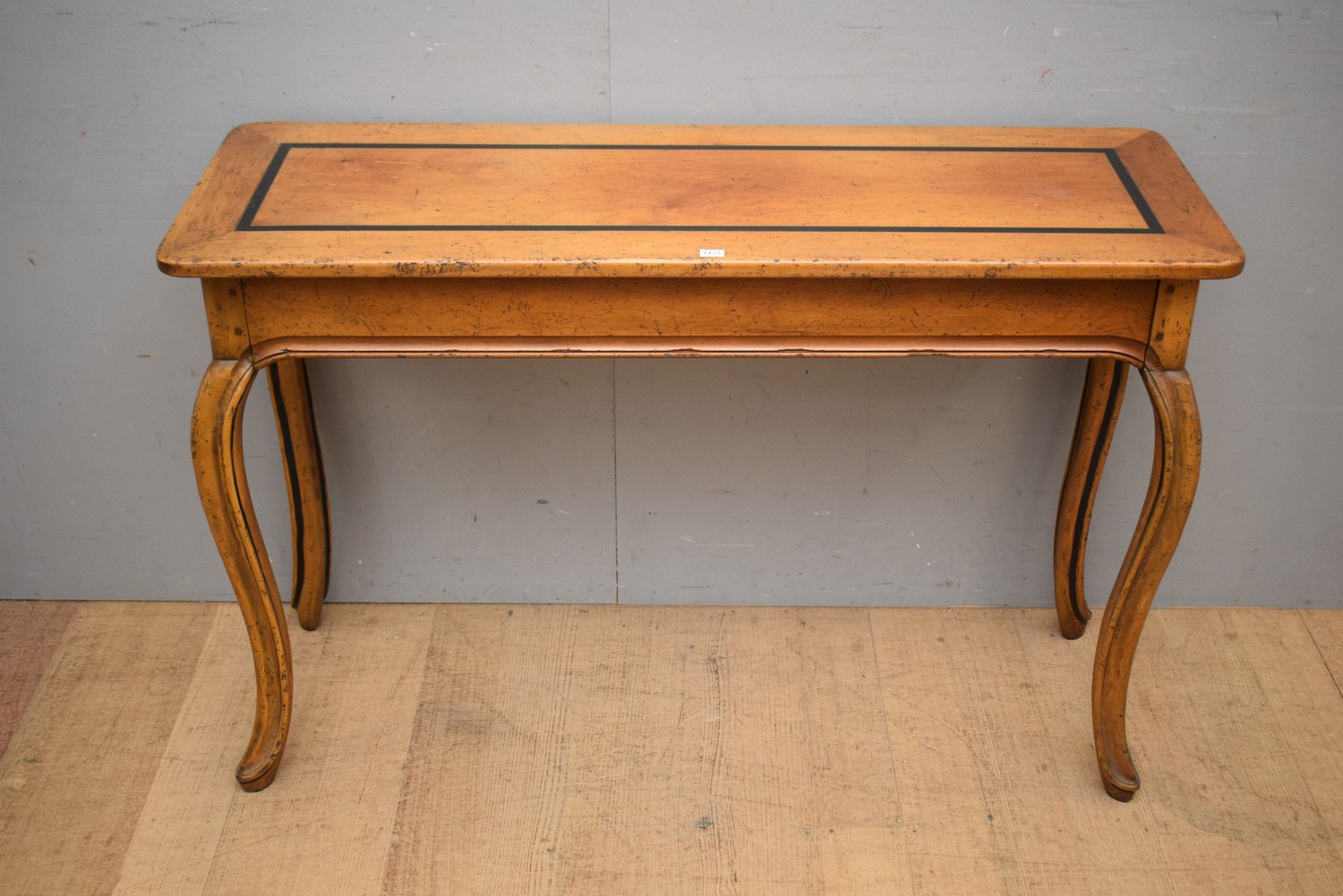 A FRENCH PROVINCIAL STYLE SINGLE DRAWER CONSOLE WITH EBONISED INLAY (77H x 115W x 40D CM) (LEONARD JOEL DELIVERY SIZE: LARGE)