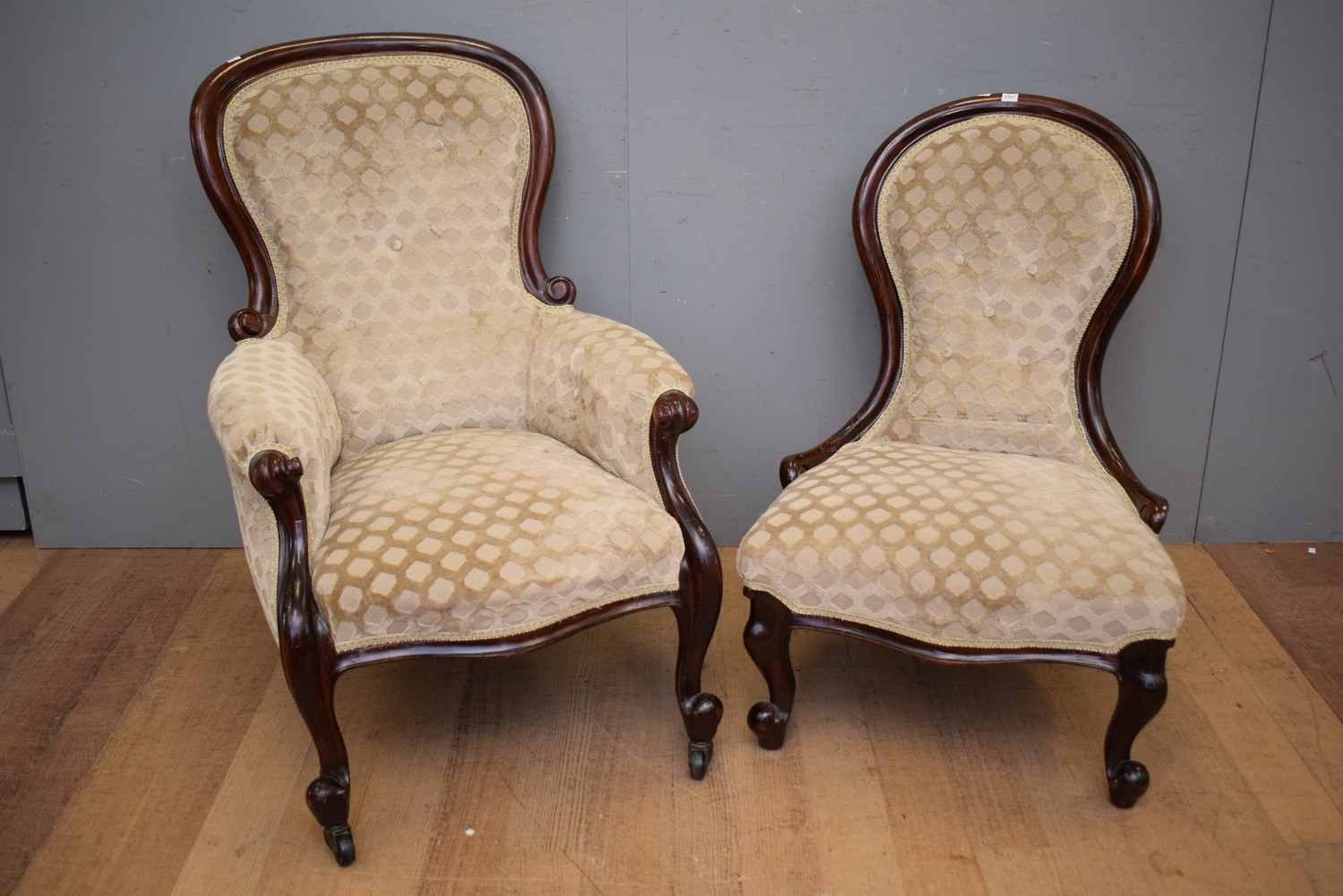 A VICTORIAN LADIES AND GENTS CHAIR (A/F) (LARGEST 99H x 69W x 76D CM) (LEONARD JOEL DELIVERY SIZE: LARGE)