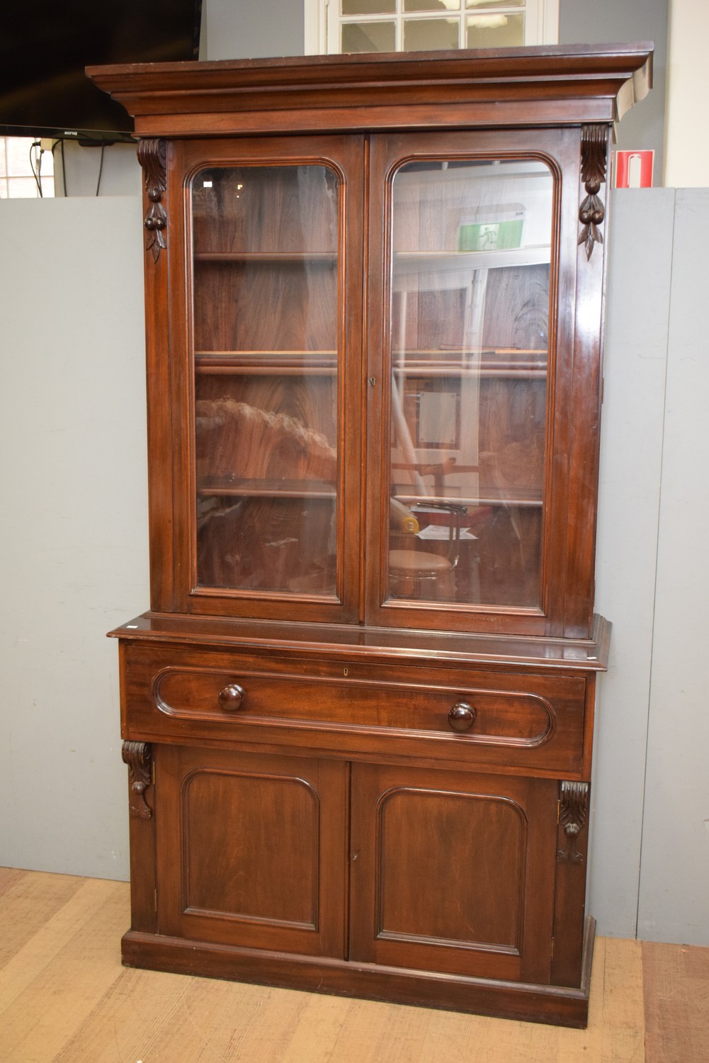 A VICTORIAN GLASS FRONTED BOOKCASE (237H x 127W x 48D CM) (PLEASE NOTE THIS HEAVY ITEM MUST BE REMOVED BY CARRIERS AT THE CUSTOMER'S EXPENSE. LEONARD JOEL STAFF CANNOT ASSIST CARRYING THIS ITEM) (X-LARGE ITEM)