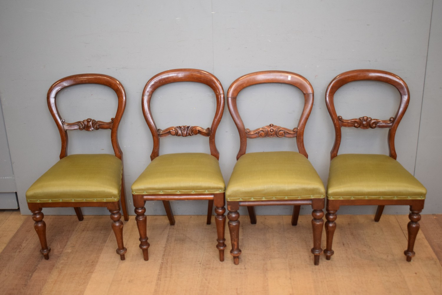 A HARLEQUIN SET OF FOUR BALLOON BACK DINING CHAIRS (A/F) (89H x 46W x 54D CM) (LEONARD JOEL DELIVERY SIZE: LARGE)