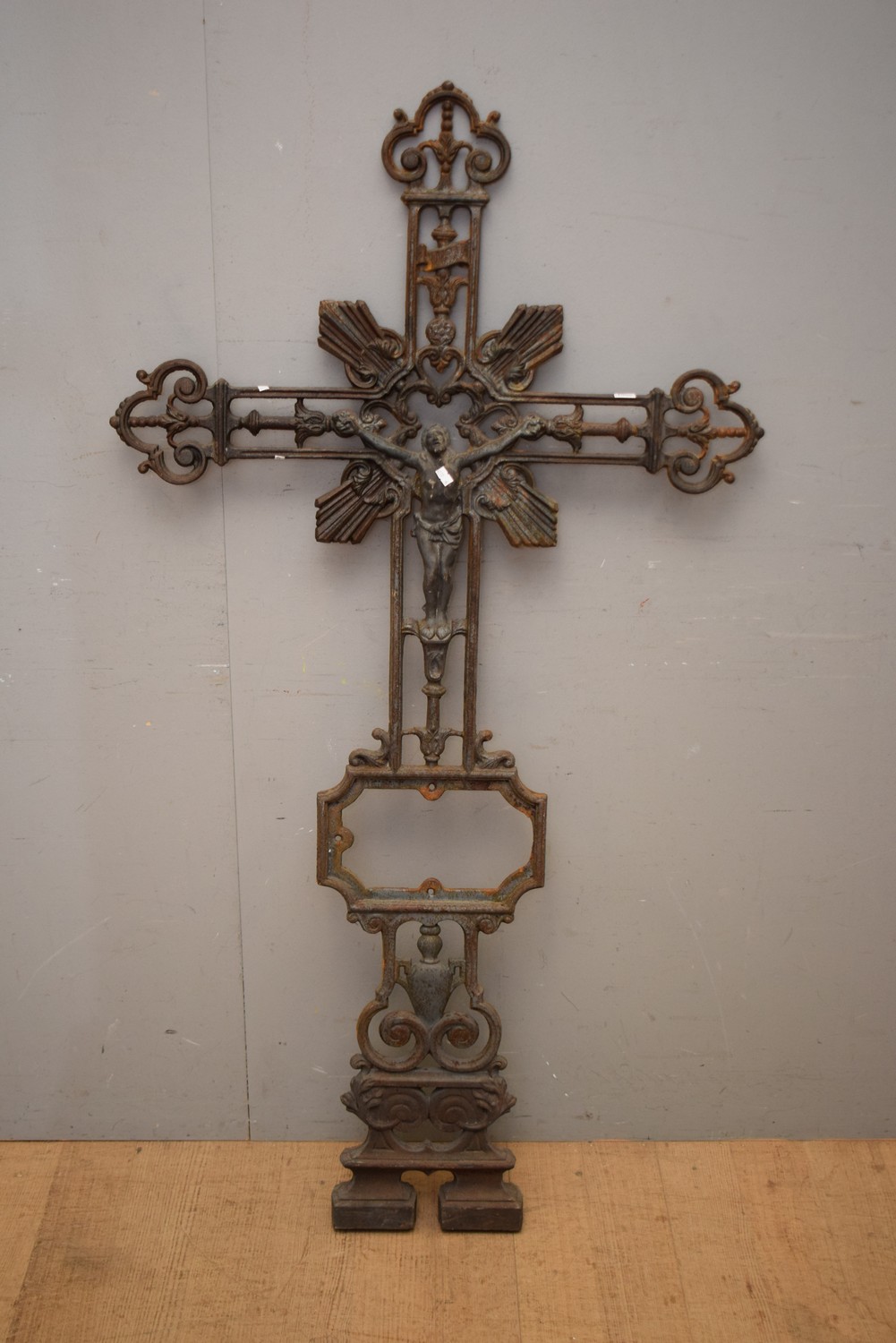 A TALL CAST IRON FRENCH CRUCIFIX (149H x 80W CM) (PLEASE NOTE THIS HEAVY ITEM MUST BE REMOVED BY CARRIERS AT THE CUSTOMER'S EXPENSE. LEONARD JOEL STAFF CANNOT ASSIST CARRYING THIS ITEM) (X-LARGE ITEM)
