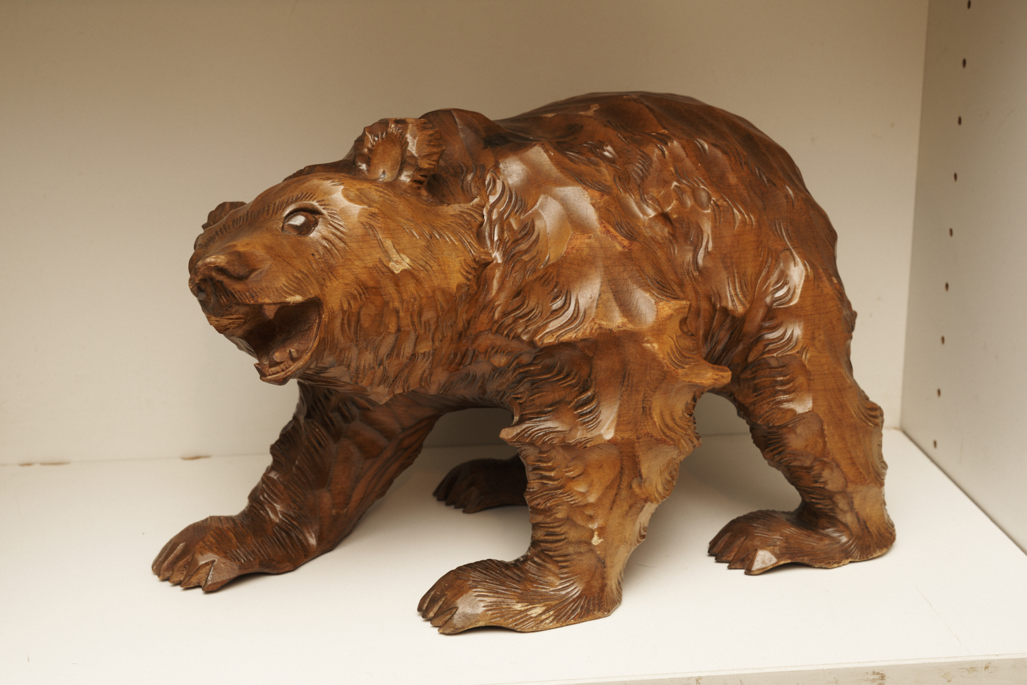 A CARVED WOODEN BEAR, H.28CM, LEONARD JOEL LOCAL DELIVERY SIZE: SMALL
