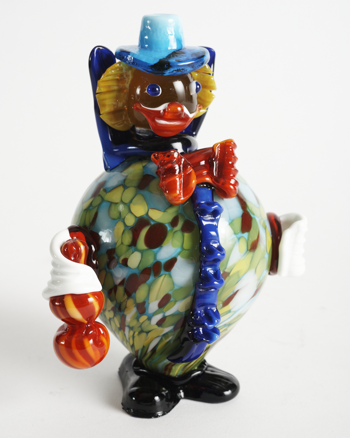 AN ART GLASS CLOWN FIGURE, H.20CM, LEONARD JOEL LOCAL DELIVERY SIZE: SMALL