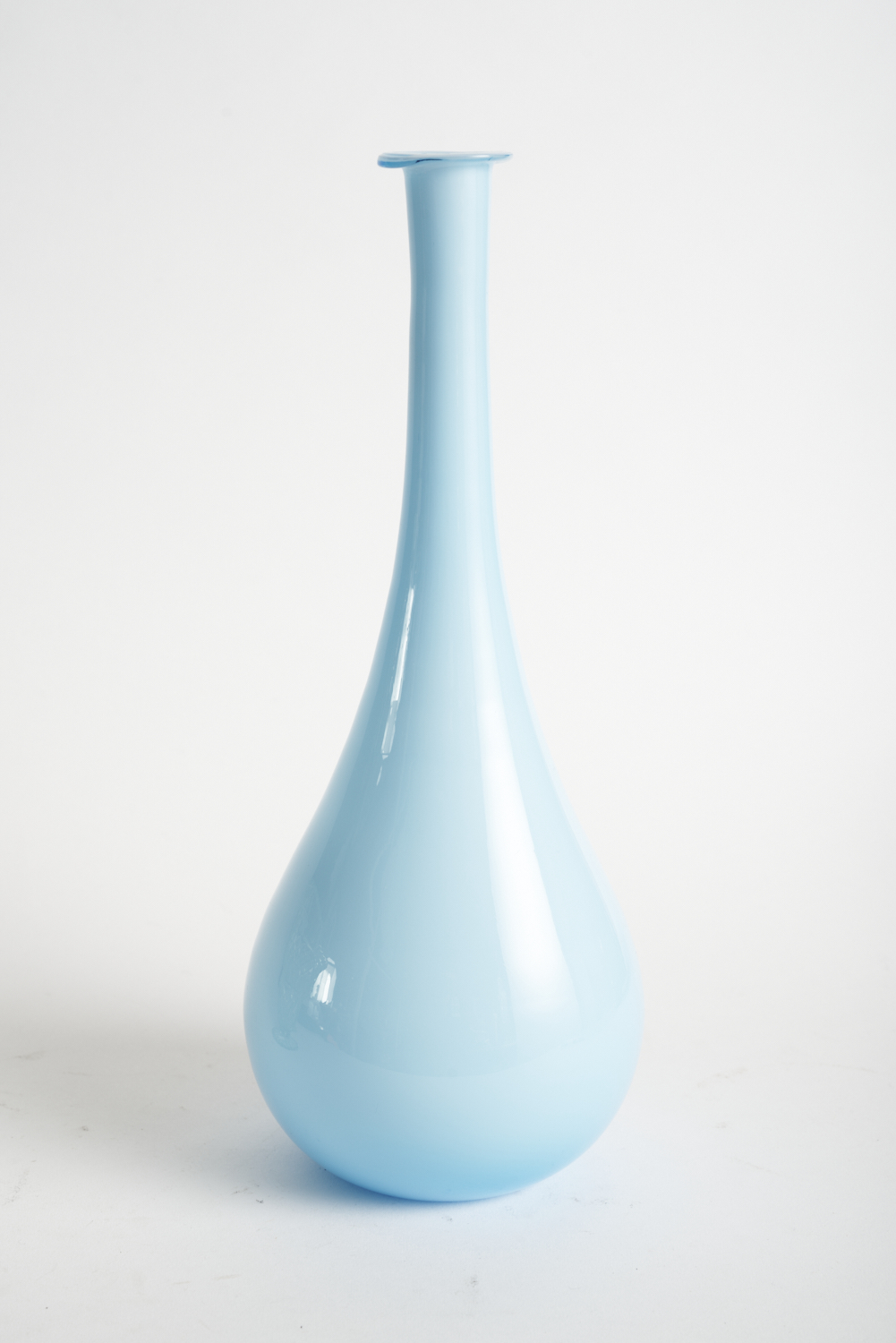 A 1960S TEARDROP FORM CASED BLUE AND WHITE VASE, H.36CM, LEONARD JOEL LOCAL DELIVERY SIZE: SMALL