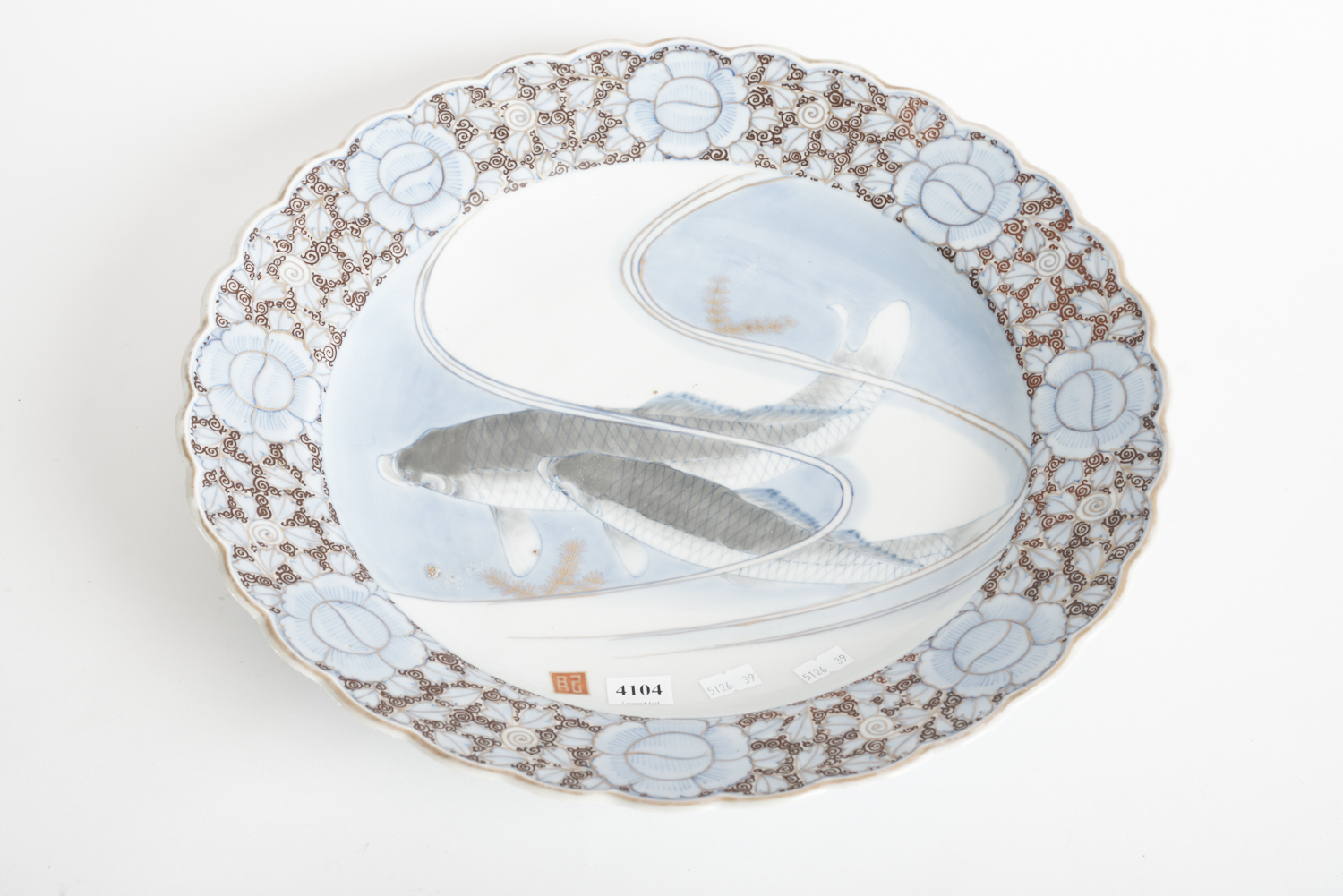 A JAPANESE CHARGER WITH FISH PATTERN, DIA.40CM, LEONARD JOEL LOCAL DELIVERY SIZE: SMALL