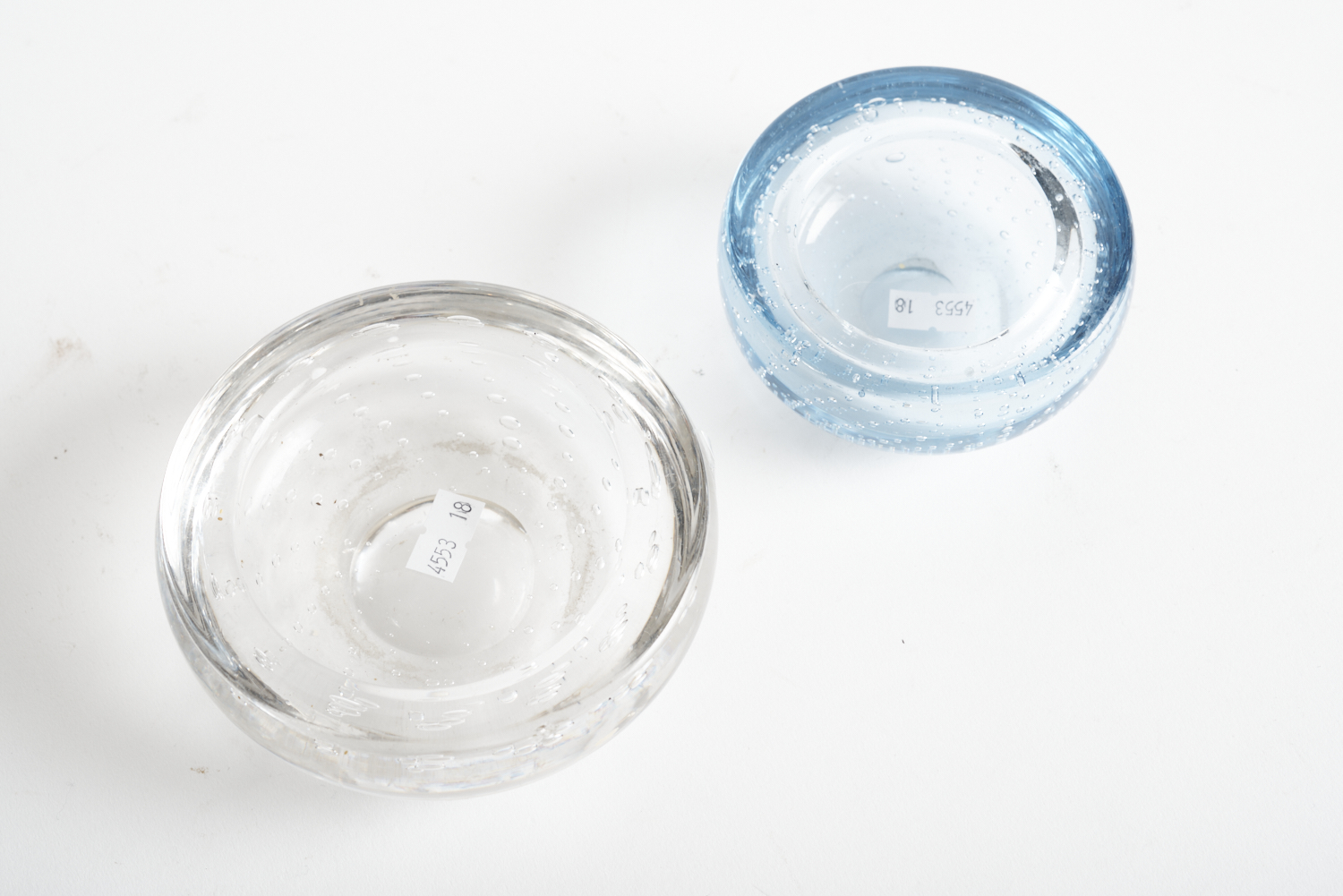 TWO CONTROL AIR BUBBLE GLASS BOWLS, LARGEST DIA.12CM, LEONARD JOEL LOCAL DELIVERY SIZE: SMALL
