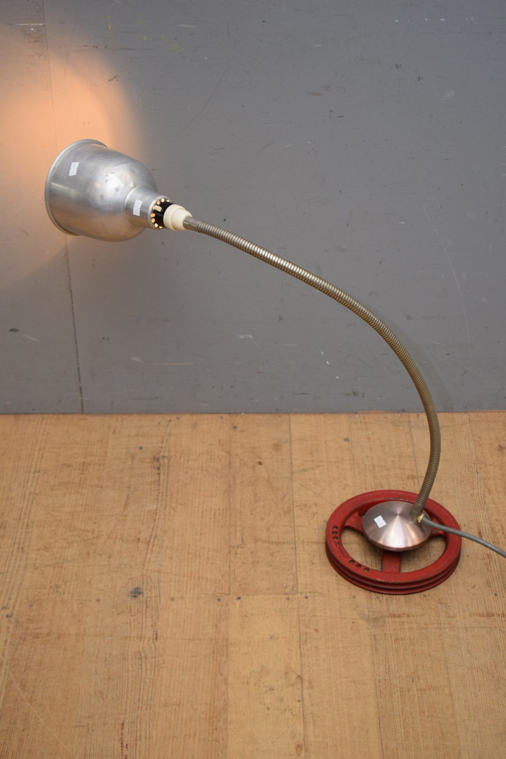 A VINTAGE INDUSTRIAL GOOSENECK WORK LAMP (88H CM) (LEONARD JOEL DELIVERY SIZE: MEDIUM)