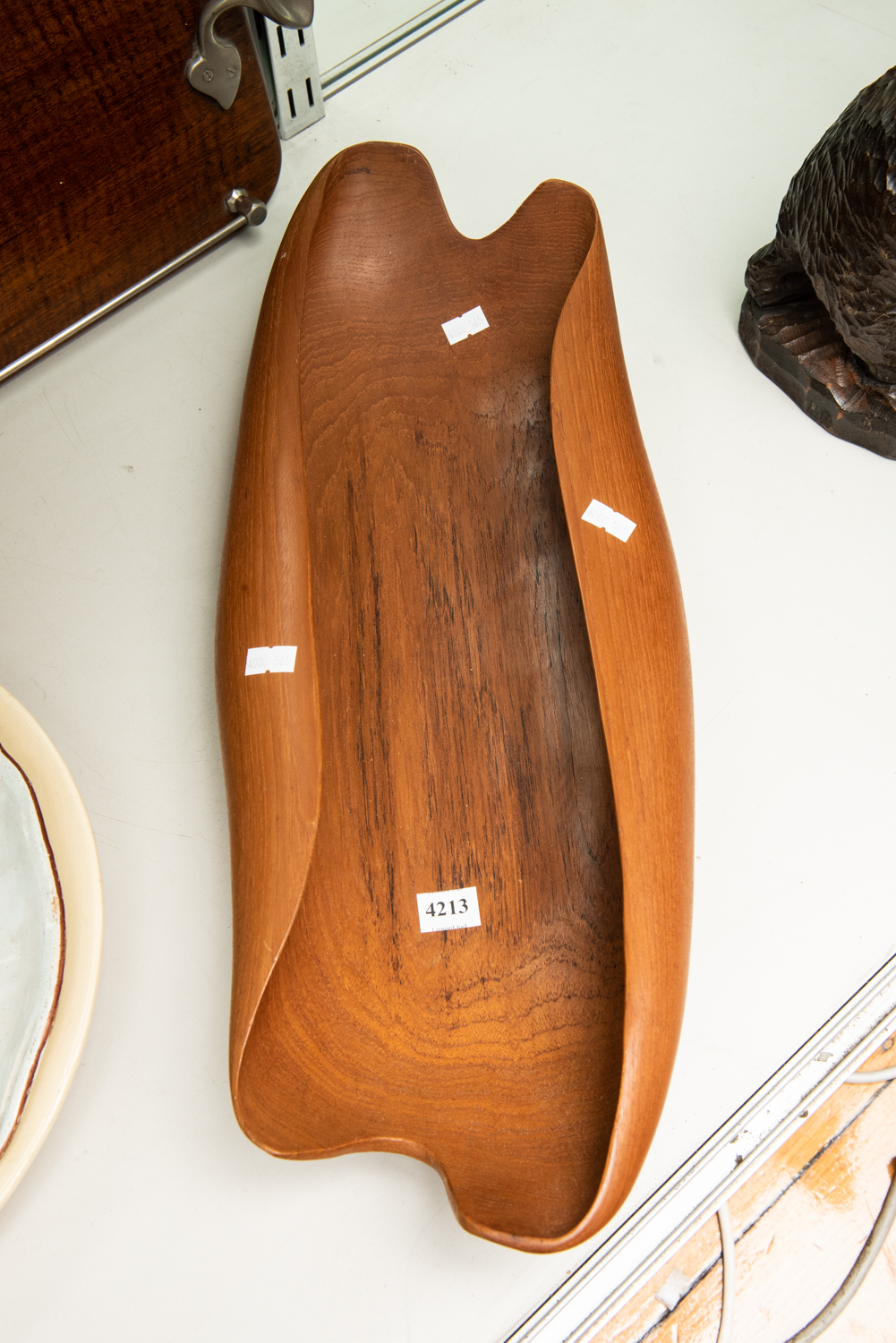 A MID-CENTURY SCULPTURAL TEAK BOWL, L.54CM, LEONARD JOEL LOCAL DELIVERY SIZE: SMALL