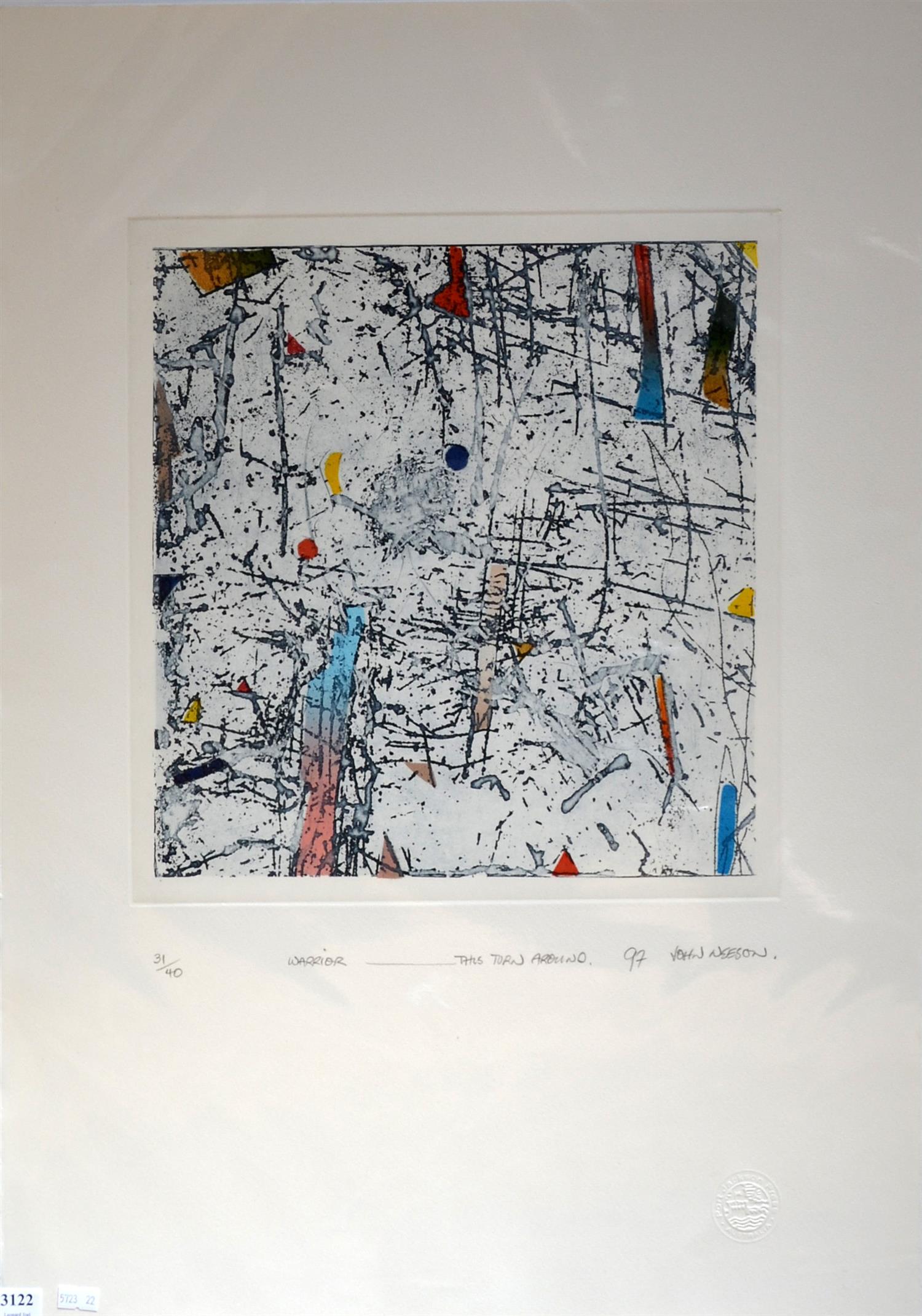 JOHN NEESON, WARRIOR - THIS TURN AROUND 1997, ETCHING 31/40, 36 X 36CM, UNFRAMED BUT BACKED AND WRAPPED FOR PROTECTION, VERY GOOD CONDITION, LEONARD JOEL DELIVERY SIZE: SMALL