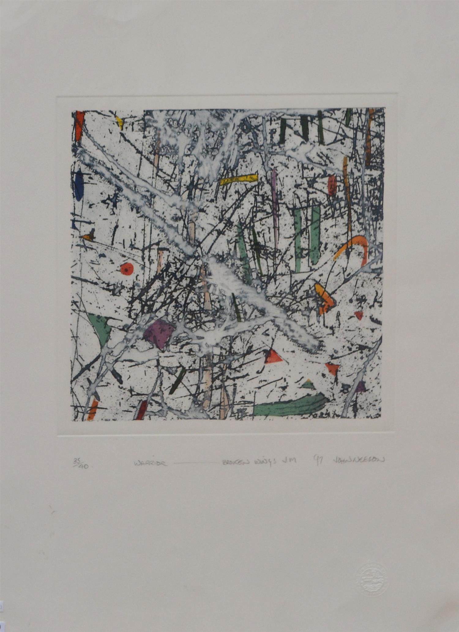 JOHN NEESON, WARRIOR - BROKEN WINGS 1997, ETCHING 35/40, 33 X 33CM, UNFRAMED BUT BACKED AND WRAPPED FOR PROTECTION, VERY GOOD CONDITION, LEONARD JOEL DELIVERY SIZE: SMALL
