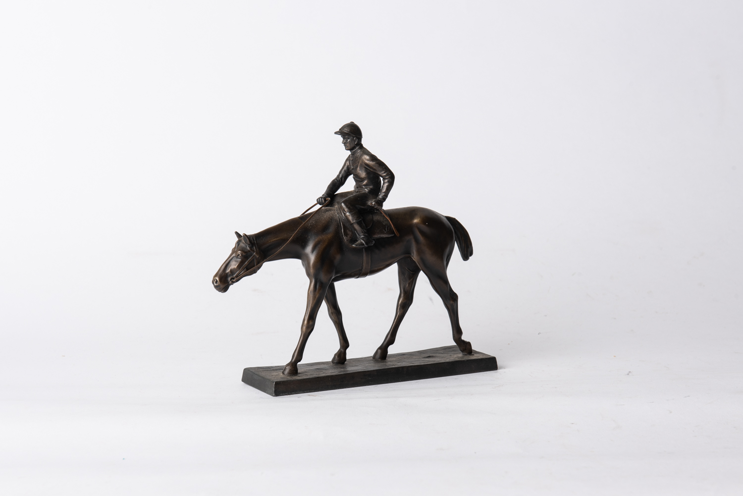 A SPELTER FIGURE OF A MOUNTED HORSE RIDER, H.22CM, LEONARD JOEL LOCAL DELIVERY SIZE: SMALL