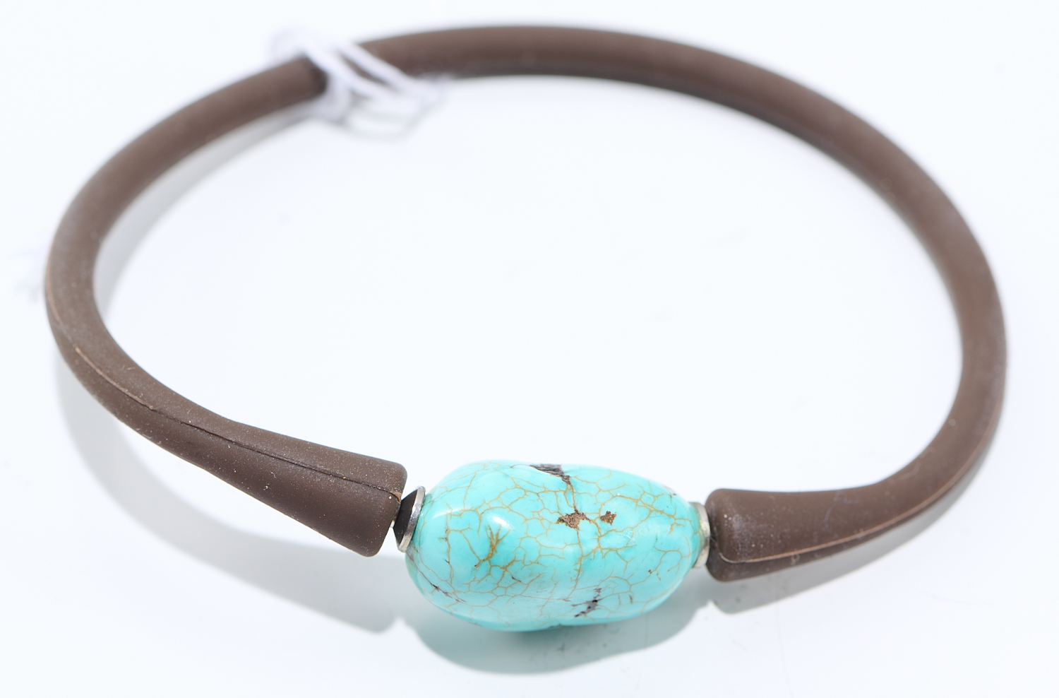 A TURQUOISE BEAD AND NEOPRENE BRACELET