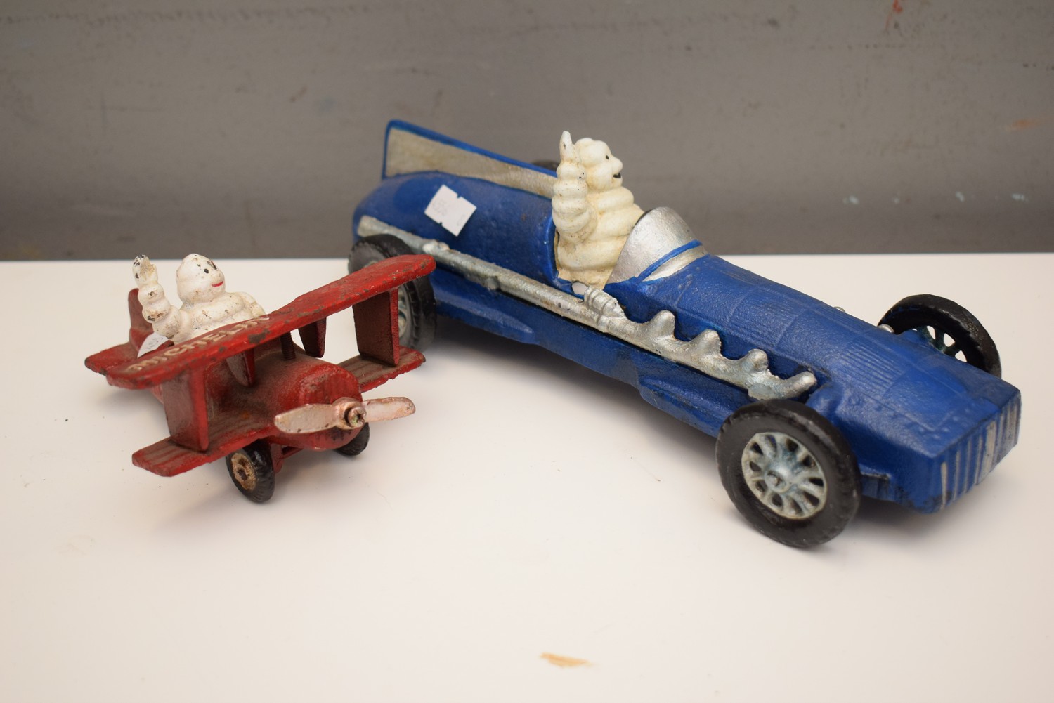 TWO MICHELIN MAN FIGURES, ONE CAR, ONE PLANE (CAR 27W CM) (LEONARD JOEL DELIVERY SIZE: SMALL)