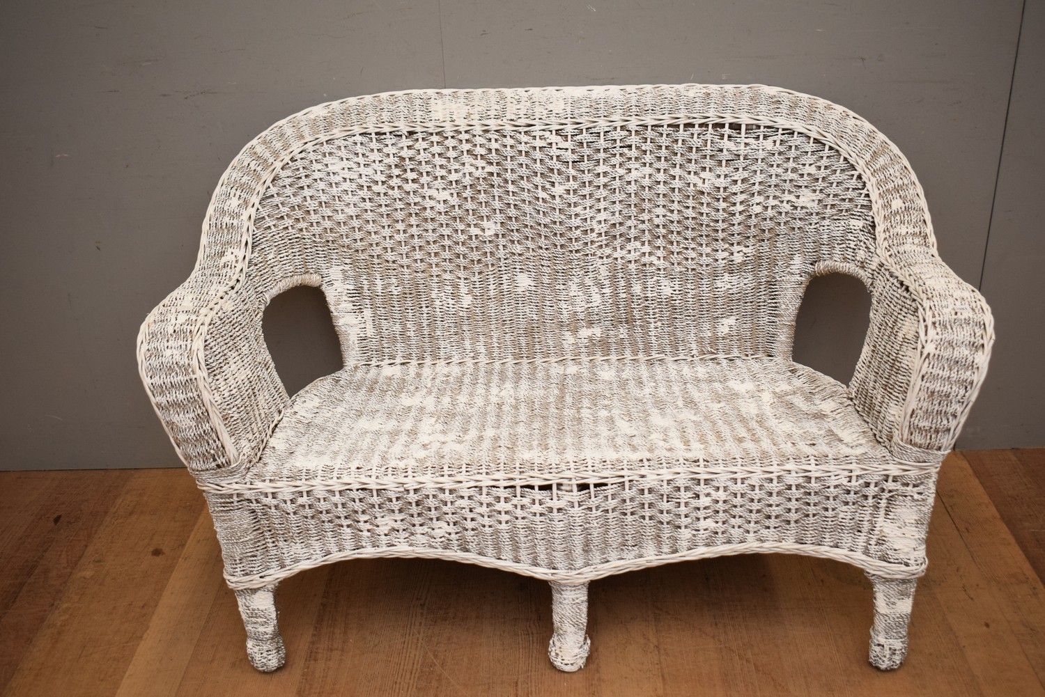 A GRIFFITH'S WEAVE WHITE PAINTED BENCH (H88 X W136 X D68 CM) (LEONARD JOEL DELIVERY SIZE: LARGE)