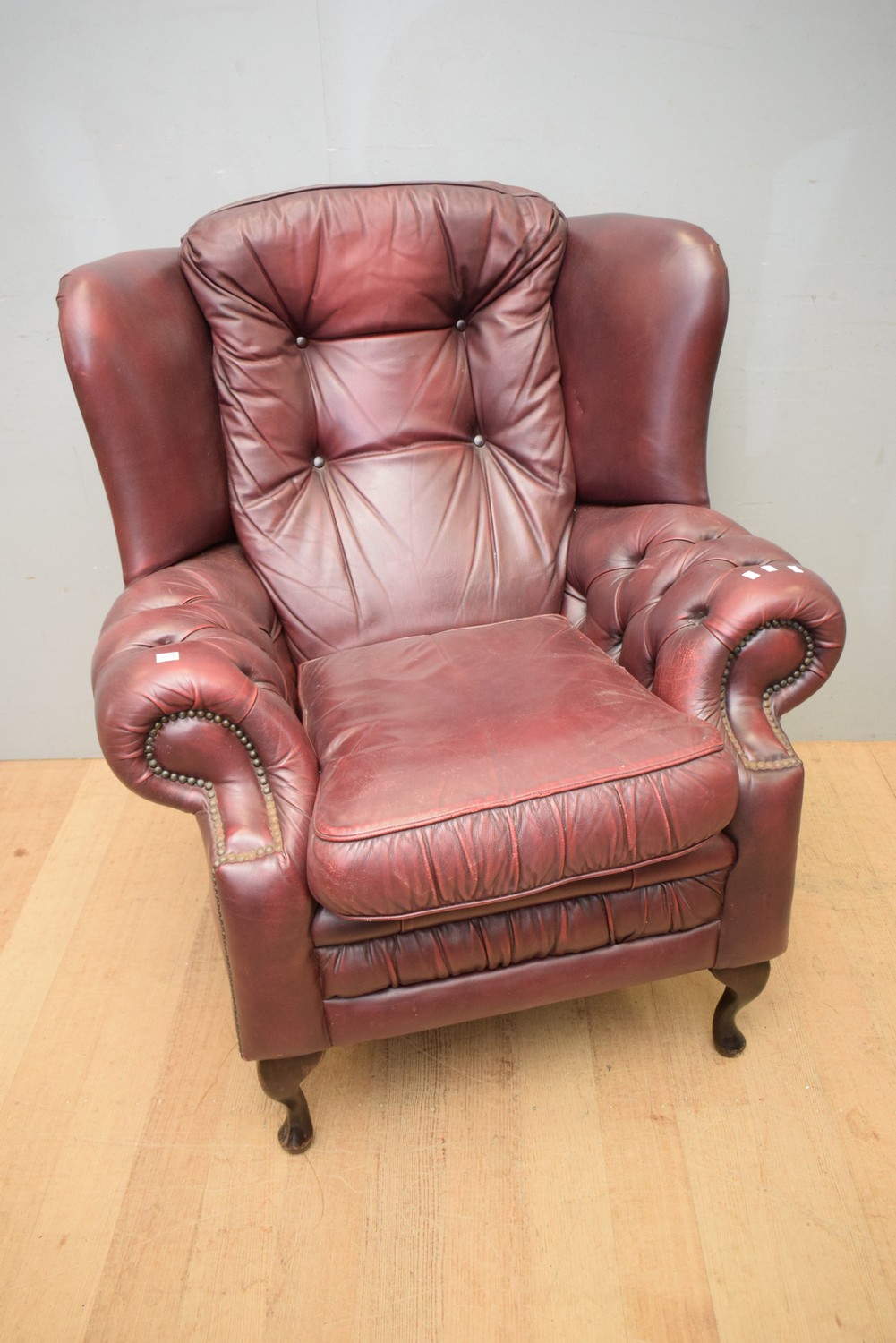 A BUTTONBACK LEATHER ARMCHAIR (H114 X W94 X D102 CM) (PLEASE NOTE THIS HEAVY ITEM MUST BE REMOVED BY CARRIERS AT THE CUSTOMER'S EXPENSE. LEONARD JOEL STAFF CANNOT ASSIST CARRYING THIS ITEM) (X-LARGE ITEM)