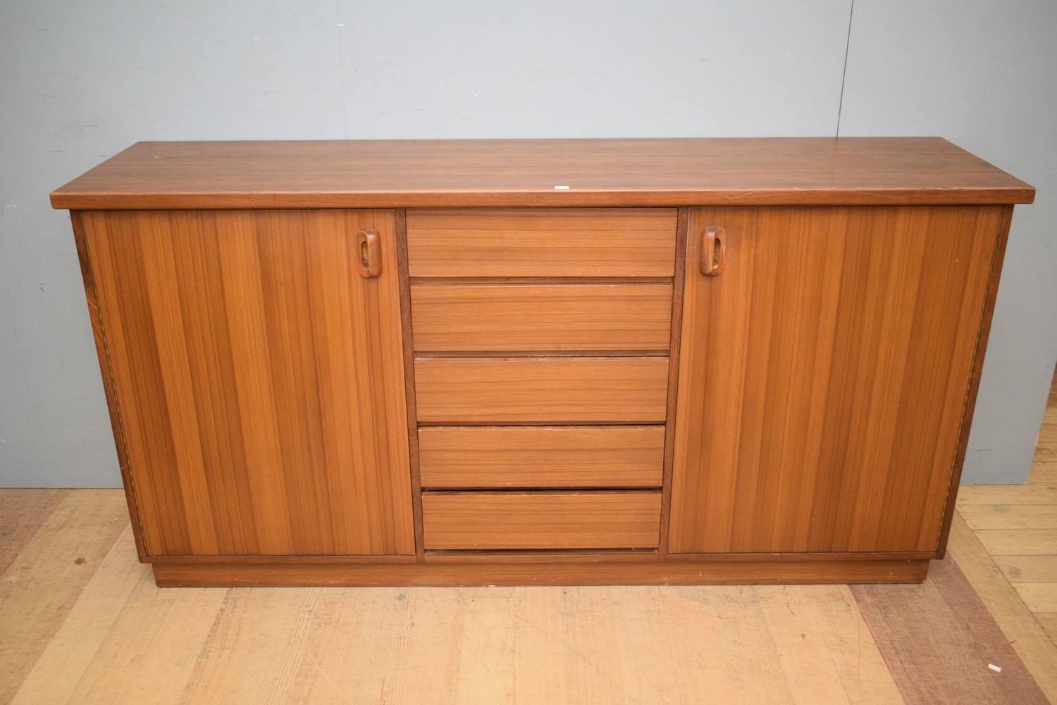 A MID-CENTURY TEAK SIDEBOARD (A/F) (H92 X W181 X D45 CM) (PLEASE NOTE THIS HEAVY ITEM MUST BE REMOVED BY CARRIERS AT THE CUSTOMER'S EXPENSE. LEONARD JOEL STAFF CANNOT ASSIST CARRYING THIS ITEM) (X-LARGE ITEM)