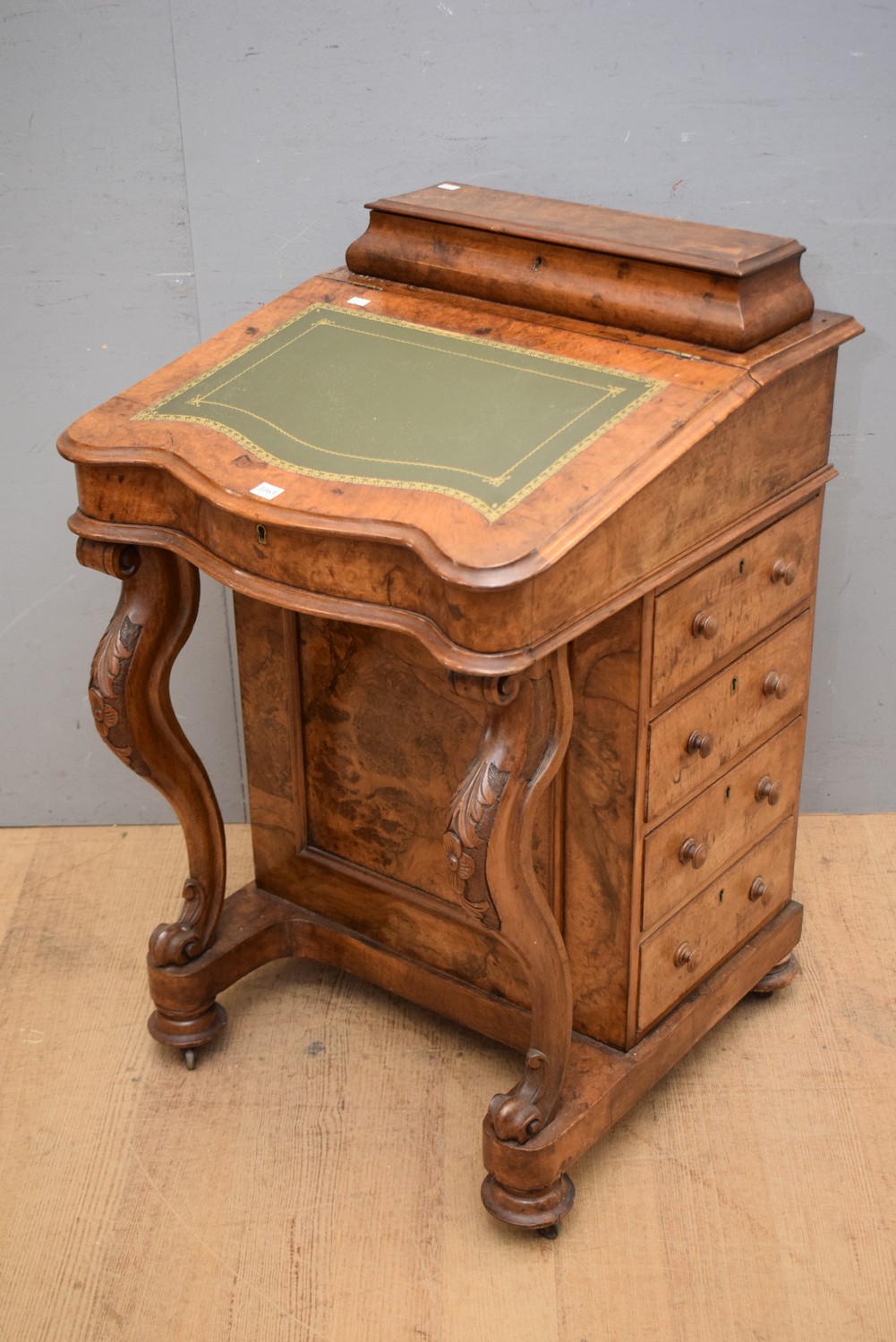 A VICTORIAN BURR WALNUT DAVENPORT WITH LEATHER INSET (87H X 55W X 60D CM) (LEONARD JOEL DELIVERY SIZE: LARGE)