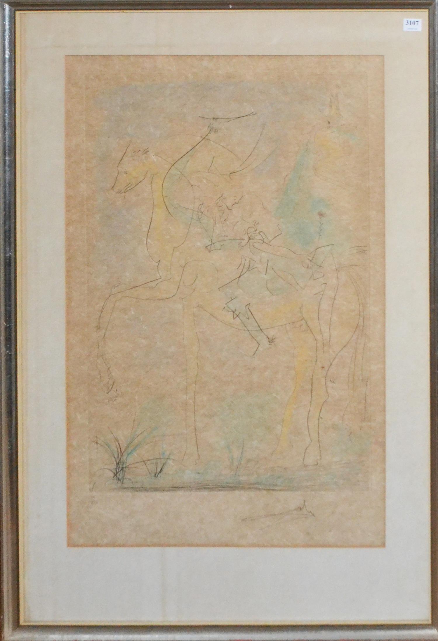 AFTER SALVADOR DALI, COUPLE A CHEVAL, LITHOGRAPH 89/120, 58 X 40CM, CERTIFICATE OF AUTHENTICITY ATTACHED VERSO, LEONARD JOEL DELIVERY SIZE: MEDIUM