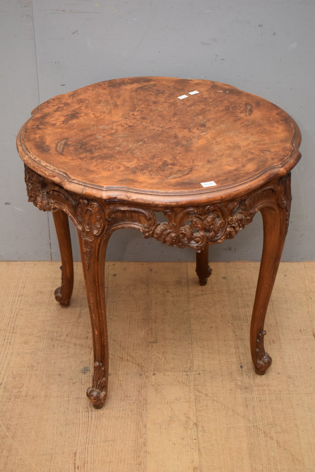 A BURR WALNUT VENEERED CIRCULAR OCCASIONAL TABLE (A/F) (57H X 61DIAMETER ) (LEONARD JOEL DELIVERY SIZE: MEDIUM)