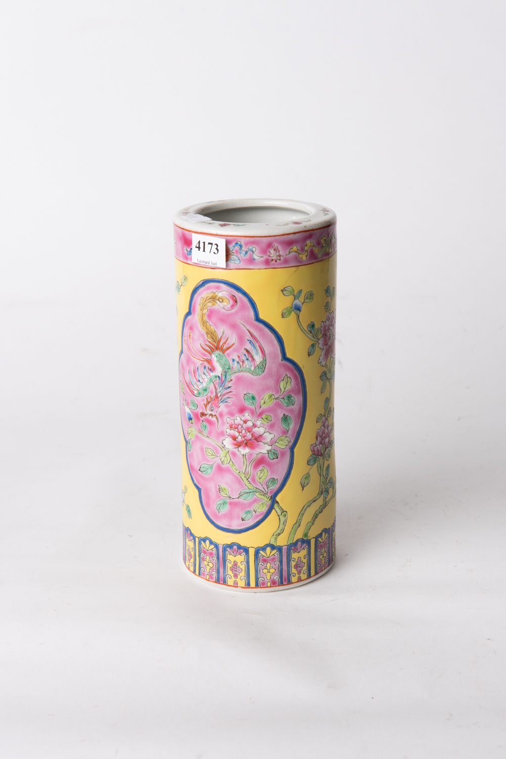 A CHINESE ENAMELLED CYLINDRICAL VASE, H.23CM, LEONARD JOEL LOCAL DELIVERY SIZE: SMALL