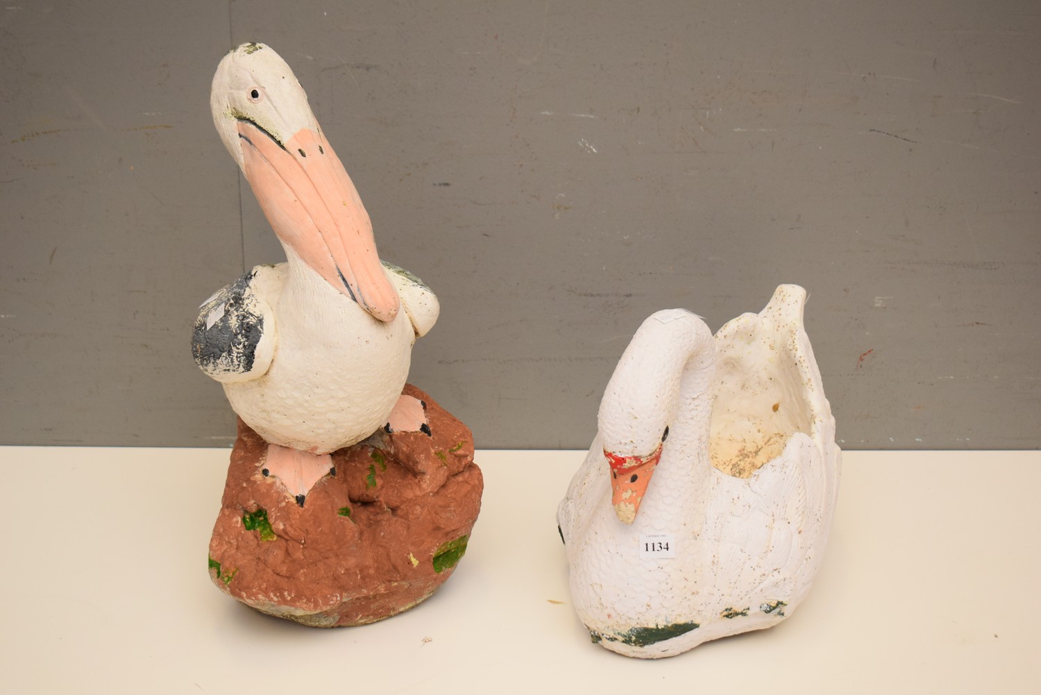 A CONCRETE PELICAN AND A SWAN (A/F) (PELICAN 44H CM) (PLEASE NOTE THIS HEAVY ITEM MUST BE REMOVED BY CARRIERS AT THE CUSTOMER'S EXPENSE. LEONARD JOEL STAFF CANNOT ASSIST CARRYING THIS ITEM) (X-LARGE ITEM)