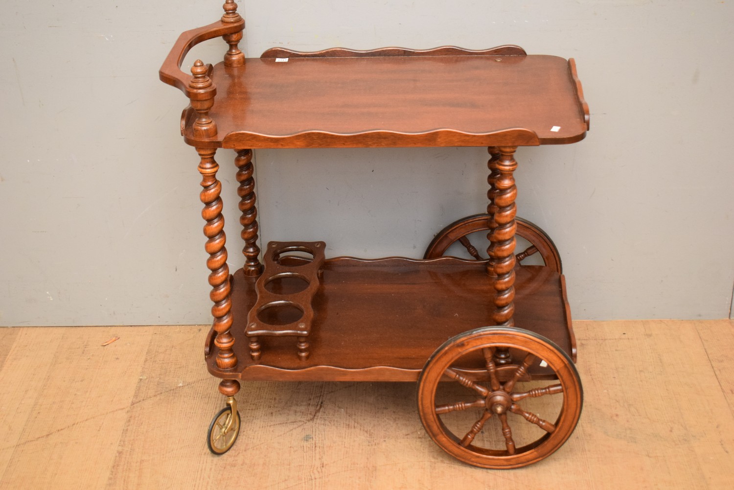 AN AUTO TROLLEY WITH BARLEY TWIST AND WAGON WHEELS (93H x 79W x 46D CM) (LEONARD JOEL DELIVERY SIZE: LARGE)