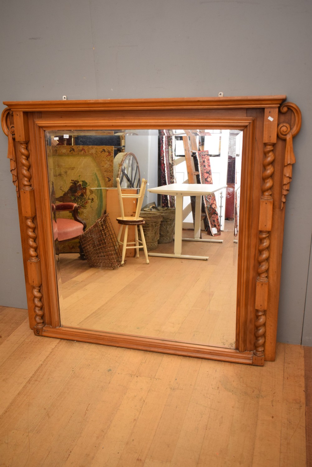A 19TH CENTURY FRENCH WALNUT MANTLE MIRROR (H138 X W155 CM) (PLEASE NOTE THIS HEAVY ITEM MUST BE REMOVED BY CARRIERS AT THE CUSTOMER'S EXPENSE. LEONARD JOEL STAFF CANNOT ASSIST CARRYING THIS ITEM) (X-LARGE ITEM)