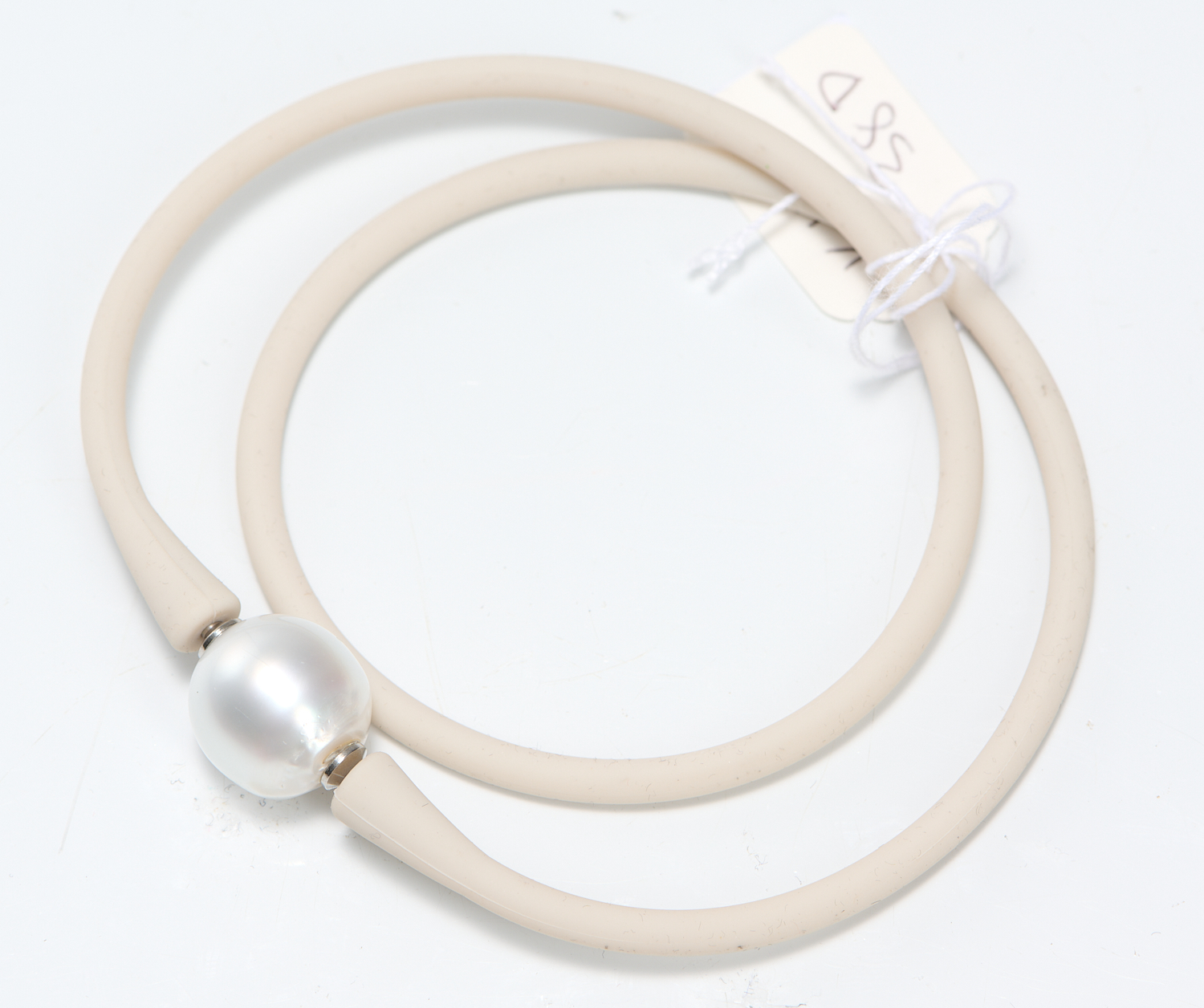 A SOUTH SEA PEARL AND BEIGE NEOPRENE COLLAR, THE PEARL MEASURING APPROXIMATELY 15.41MM