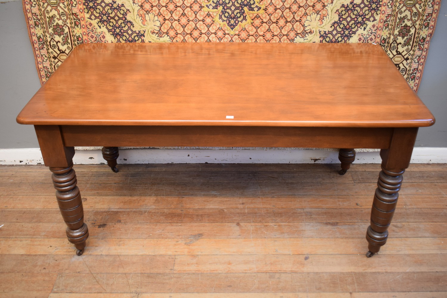 A VICTORIAN KAURI BLACKWOOD KITCHEN TABLE (76H X 152W X 81D CM) (PLEASE NOTE THIS HEAVY ITEM MUST BE REMOVED BY CARRIERS AT THE CUSTOMER'S EXPENSE. LEONARD JOEL STAFF CANNOT ASSIST CARRYING THIS ITEM) (X-LARGE ITEM)