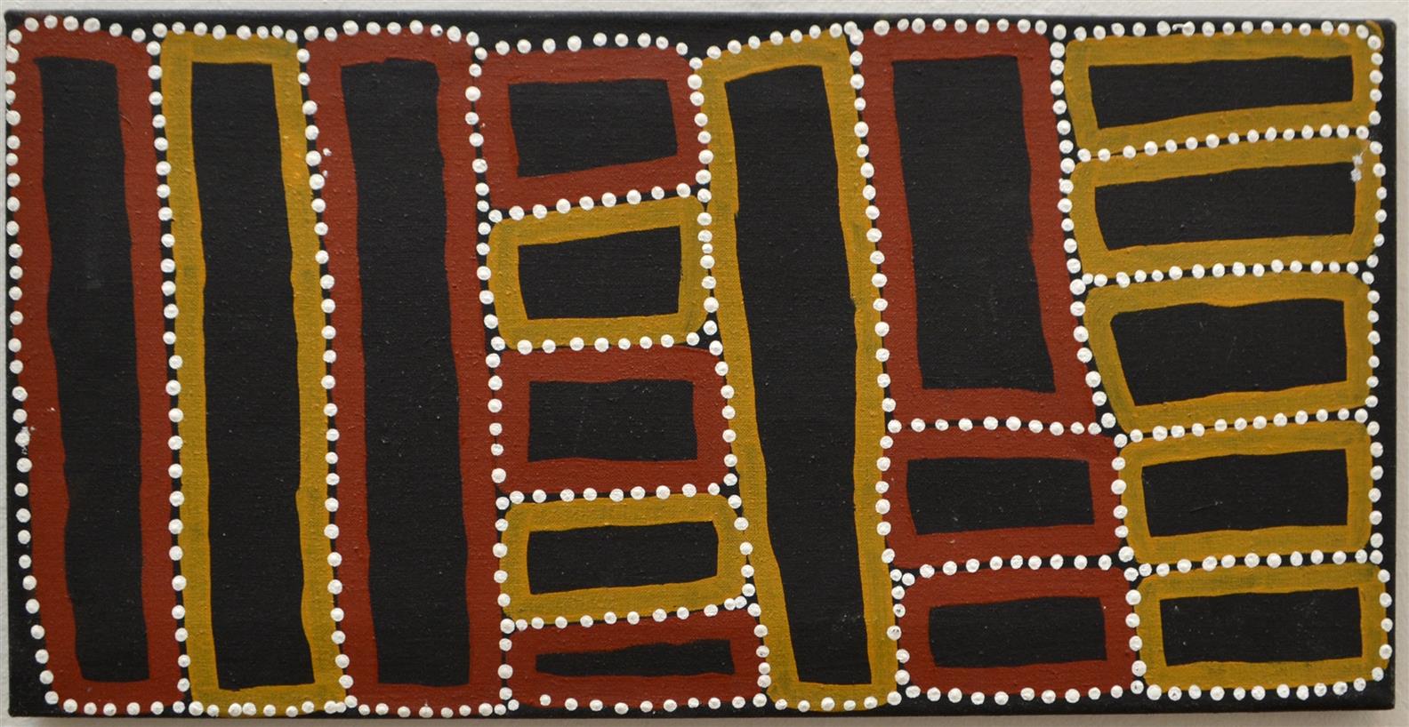 WALALA TJAPALTJARRI, TINAGARI CYCLE 2000, ACRYLIC ON CANVAS, GALLERY GONDWANA CAT NO VERSO: 5080WT, 31 X 61CM, CONDITION: GOOD WITH SOME WEAR, LEONARD JOEL DELIVERY SIZE: SMALL