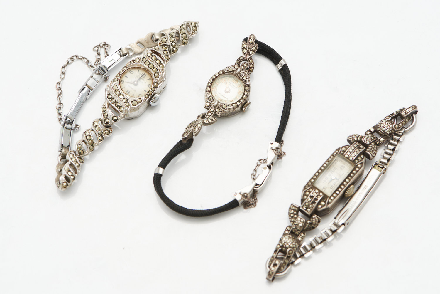 A COLLECTION OF THREE LADIES COCKTAIL WRISTWATCHES SET WITH MARCASITE, COMPRISING OLYMP, DUNKLINGS AND JULIETTE
