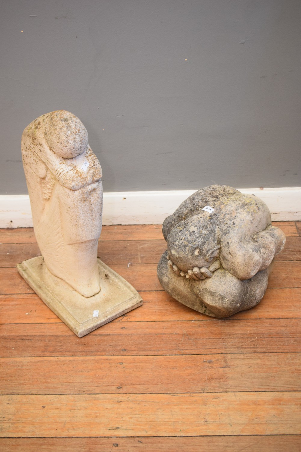 TWO CONCRETE GARDEN SCULPTURES (51H CM) (PLEASE NOTE THIS HEAVY ITEM MUST BE REMOVED BY CARRIERS AT THE CUSTOMER'S EXPENSE. LEONARD JOEL STAFF CANNOT ASSIST CARRYING THIS ITEM) (X-LARGE ITEM)