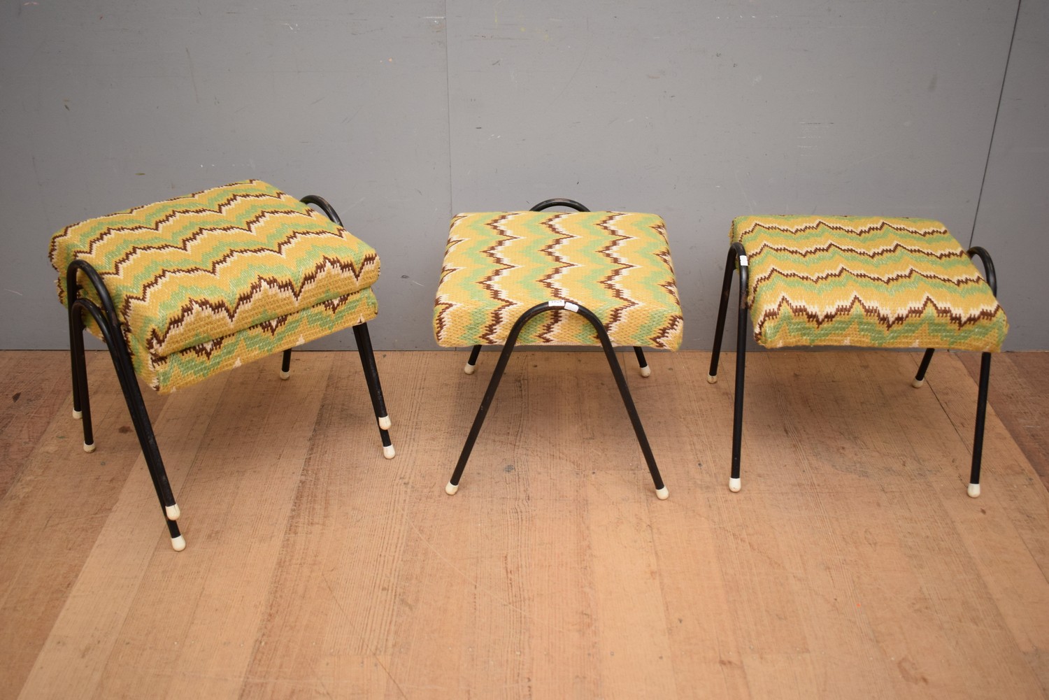 A SET OF FOUR 1950S SEBEL STACK STOOLS ( 41H X 42W X 42 D CM)(LEONARD JOEL DELIVERY SIZE: MEDIUM)
