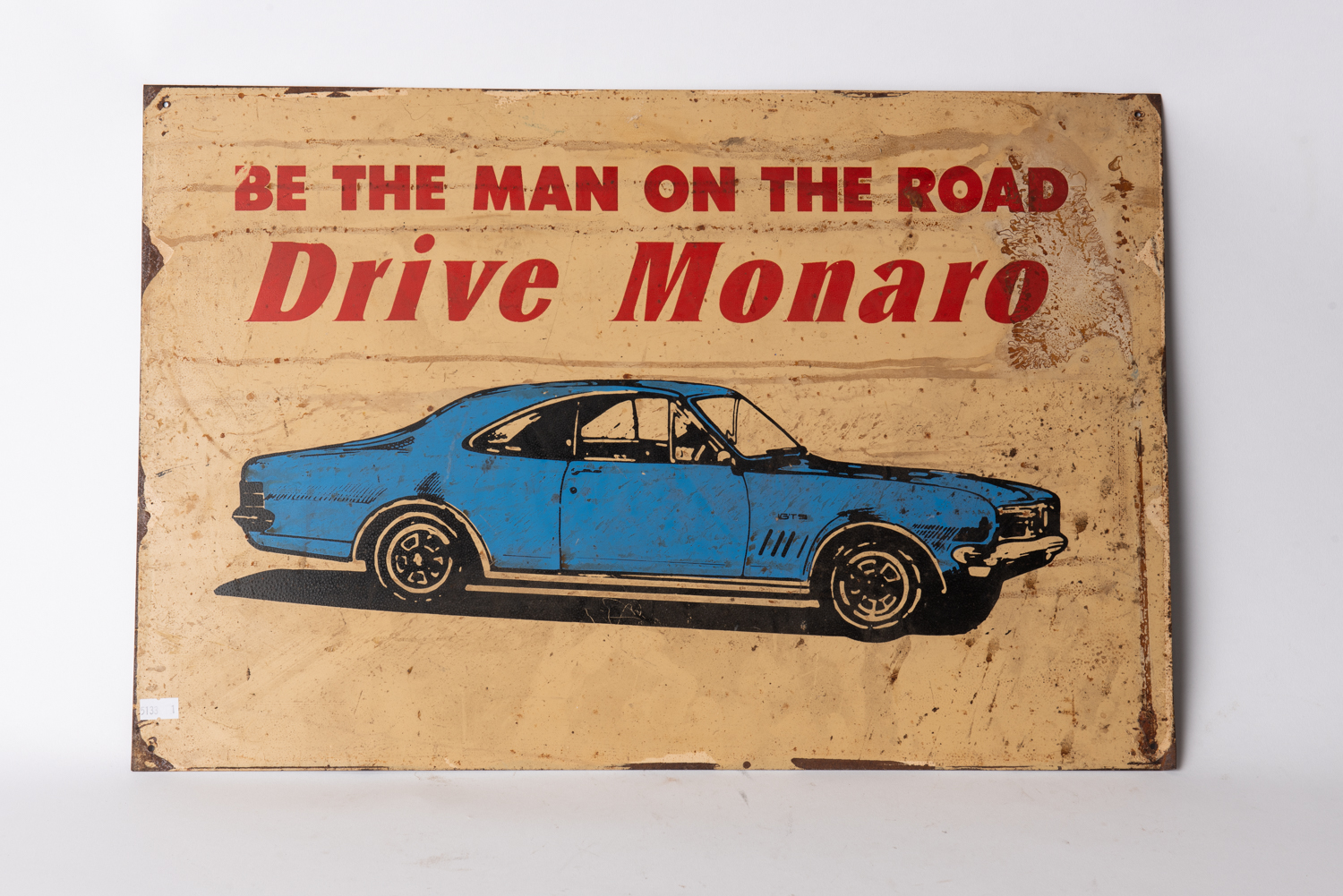 A HOLDEN MONARO ENAMEL SIGN, 40 X 60 CM, LEONARD JOEL LOCAL DELIVERY SIZE: SMALL