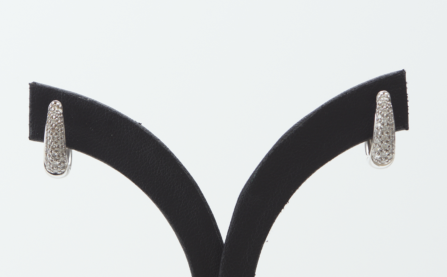 A PAIR OF DIAMOND PAVÉ SET EARRINGS IN 18CT WHITE GOLD, TO POST FITTINGS, 6GMS